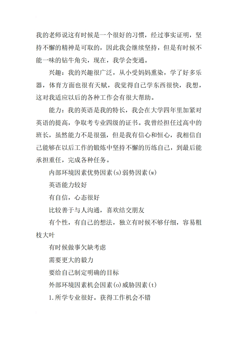 通信工程专业大学生职业生涯规划书在做职业生涯规划的这段时间,茫茫的一片大海,我总感觉有一颗启明星在亮着。于是,我坚持,每天都在早上起来第一件事,我对自己说,机会是留给有准备的人。篇一一、前言:只能说是幸运,或者是机遇,我选到了周老师的职业生涯规划课,让我深深认识了自己。曾几何时,我也梦想着自己成为最优秀的学生,上市里最好的高中,然而现实是残酷的,中考我发挥失常,考到了市里第二的学校;曾几何时,我梦想着考上清华北大,让爸妈有可以炫耀的资本,但现实是残酷的;曾几何时,我读着名人传记,也梦想着自己能成为他们一样伟大的任务,然而,现实是残酷的。于是,我第一次静下心来,回想自己这么多年的目标和行动,分析自己的长处和短处,我想,我会有收获。二、自我分析性格:我对熟悉的朋友很热情,能聊的来,经常喜欢跟他们一起说笑,但是对于陌生人,我曾经总感到很拘谨,不愿意多说话,我自己知道,这对我今后的发展很不利。因此我努力的改变,现在的我比以前开朗了许多,我觉得自己的交流能力和耐力有了长足的进步,因此我对应对将来的工作很有信心。我曾经是一个完美主义者,凡事都想追求最好,