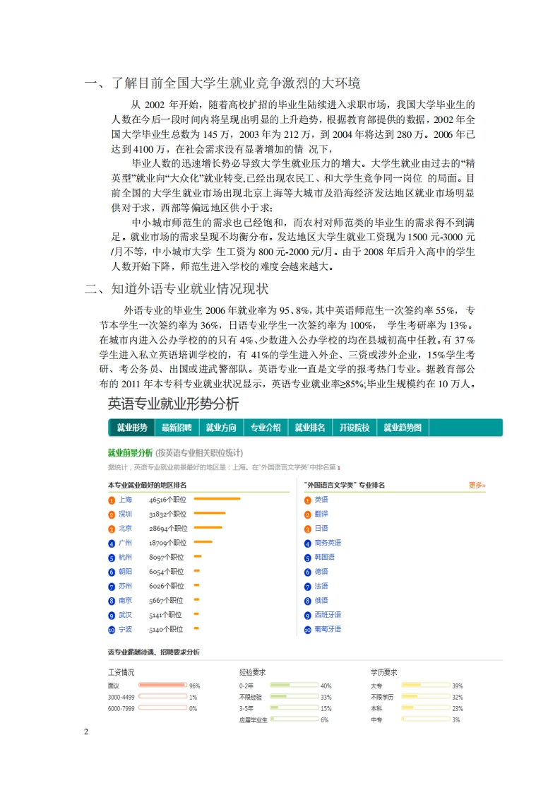 外语专业大学生职业生涯规划书范文348072@abc4个月前发布关注私信0.25MB6页040外语专业大学生职业生涯规划书范文此内容为付费资源,请付费后查看¥13¥22黄金会员免费钻石会员免费立即购买您当前未登录!建议登陆后购买,可保存购买订单付费资源 第1页 / 共6页 第2页 / 共6页 试读已结束,还剩4页,您可下载完整版后进行离线阅读 THE END规章制度 文本预览 大学生职业期划书名:蒋林学院:外国语学院专业:英语专业学号:12013240681 查看更多 收起部分 喜欢就支持一下吧收藏