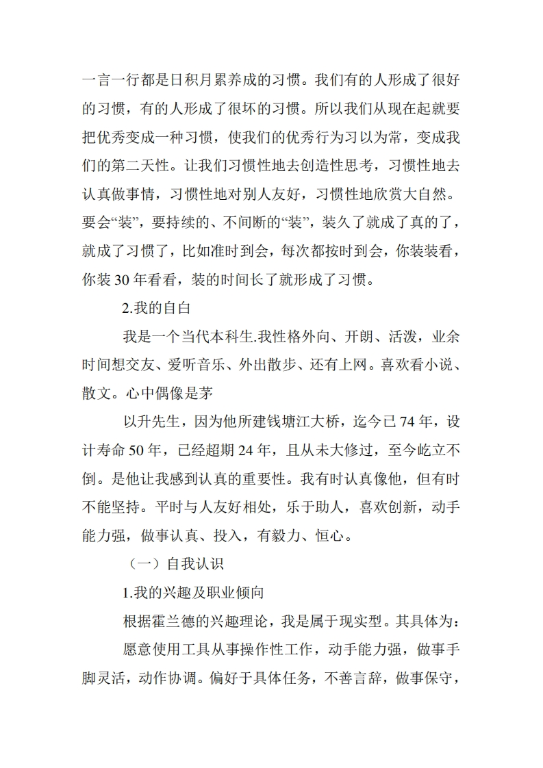 我的职业生涯规划计划书(材料科学与工程专业的)我的职业生涯规划计划书目录1.前言2.我的自白正文(一)自我认识1.我的兴趣及职业倾向2.我的性格3.我的职业价值观4.个人特质5.自我认识小结(二)认清环境,把握形势变化1.家庭环境2.学校环境3.社会环境4.职业环境(三)职业目标定位及其分析组合1.职业目标的确定2.职业目标的分解3.备选方案(四)评估调整1.评估调整的内容2.评估调整的时间3.评估调整的原则(五)总结1.前言优秀是一种习惯,那么懒惰也是一种习惯。人出生的时候,除了脾气会因为天性而有所不同,其他的东西基本都是后天形成的,是环境的影响和教育的结果。所以,我们的