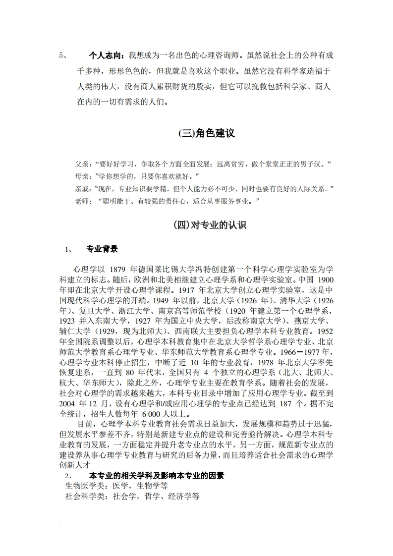 大学生职业生涯规划(一)前言在今天这个人才竞争的时代,职业生涯规划开始成为就业争夺战中的另一重要利器。对于每一个人而言,职业生命是有限的,如果不进行有效的规划,势必会造成时间和精力的浪费。作为当代的大学生,若是一脸茫然踏入这个竞争激烈的社会,怎能使自己占有一席之地?因此,我为自己拟定一份职业生涯规划。有目标才有动力和方向。所谓“知己知彼,百战不殆”,在认清自己的现状的基础上,认真规划一下自己的职业生涯。一个有效的职业生涯设计必须是在充分且正确认识自身条件与相关环境的基础上进行的。要审视自己、认识自己、了解自己,做好自我评估,包括自己的兴趣、特长、性格、学识、技能、智商、情商、思维方式等。即要弄清我想干什么、我能干什么、我应该干什么、在众多的职位面前我会选择什么等问题。所以要想成功就要正确评价自己。(二)个人信息姓名:性别:男年龄:19就读院系:个人分析1、个人性格:既有外向的一面,又有内向的一面。平时的我喜欢独自思考,能够让人感到自己的无处不在,当众人遇到困难时可以询问于我:活动的时候我也可以自我闪耀,让其他人都为我癫狂。2、个人兴趣:喜欢音乐,爱好各类球类活动。也能够一个人静静地欣赏完一篇美文或一部电影。3、个人特长:有坚持不懈的精神,有虚心问学的勇气,有有错必改的正气,最重要的是我有一颗忠诚的心。4个人学识:本科专业生。