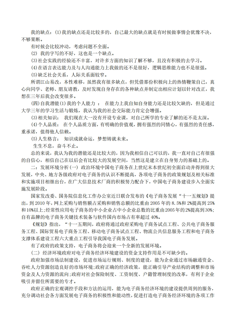 新煤体运营的职业生涯规划书范文职业生涯规划书可以发掘新媒体运营个人工作者的自我潜能。下面是爱汇给大家整理的新媒体运营的职业生涯规划书范文,供大家阅读!新媒体运营的职业生涯规划书范文篇1序言:不少人都曾经这样问过自己:“人生之路到底该如何去走?记得一位哲人这样说过:“走好每一步,这就是你的人生。是啊,人生之路说长也长,因为它是你一生意义的诠释:人生之路说短也短,因为你生活过的每一天都是你的人生。每个人都在设计自己的人生,都在实现自己的梦想。当前大学生所面对的就业压力十分的大,特别是我们大专生!我们如何在以后严峻的就业形式面前做的更好,在以后应聘时从众多的应聘者中脱颖而出,我们以后到底做些什么,我们以后往那些方面发展?我们可能会感到迷茫。所以我们有必要提前规划我们的未来,为我们以后的发展做好规划,也就是我们的职业生涯设计!一:自我评估(认识自我)(一)自己的兴趣、爱好就自身而言,我认为自己的兴趣与爱好其实是比较广泛的。我喜欢看书、听音乐,上网,郊游,还有各种体育活动…(二)性格特征分析(1)性格的态度特征:我的性格是比较诚实、正直的,谦虚,有亲和力,在做事情时认真勤奋责任心强,同时有一定的创新意识。在自己的生活与同学及其他人的交往中是比较大方的,自己做事情虽然细心但还是比较马虎的。有时候工作不够主动,还有的时候比较拖拉,存在懒惰的心理。(2)性格的情绪特征:我的性格在情绪上是比较容易冲动的那种,情绪欠稳定易波动。(3)性格的意志特征:我的性格在意志方面是比较犹豫、顽强有点倔强、坚持对一些事情不会轻易放手。但是不可否认的是在意志力控制方面做的不是很好,这或许是我的一个比较大的缺点,在对事物的预知上是属于乐观但同时有比较强的忧患意识。(4)性格的理智特征:我是属于那种主动观察的类型,同时我认为自己在做事情的时候是现实主义与幻想主义的结合,也可以说是个完美主义者。(三)“金无足赤,人无完人没有一个人是十全十美的,我们都有自己的优缺点,我当然也不例外,所以我对必须自己的优缺点有清醒的认识。我的优点:(1)我的兴趣比较广泛,对事物的接受能力强。(2)强烈的工作热情,认真负责,工作努力。(3)对人诚恳,大方,有良好的协作技巧,能和别人建立起和谐友好的关系,同时有非常强的责任意识:别人可以信任我实现自己的诺言。(4)我并没有什么突出的特长,但我有乐观的生活态度,积极热情,富有推动力。(⑤)忧患意识较强,做事情计划性较强。