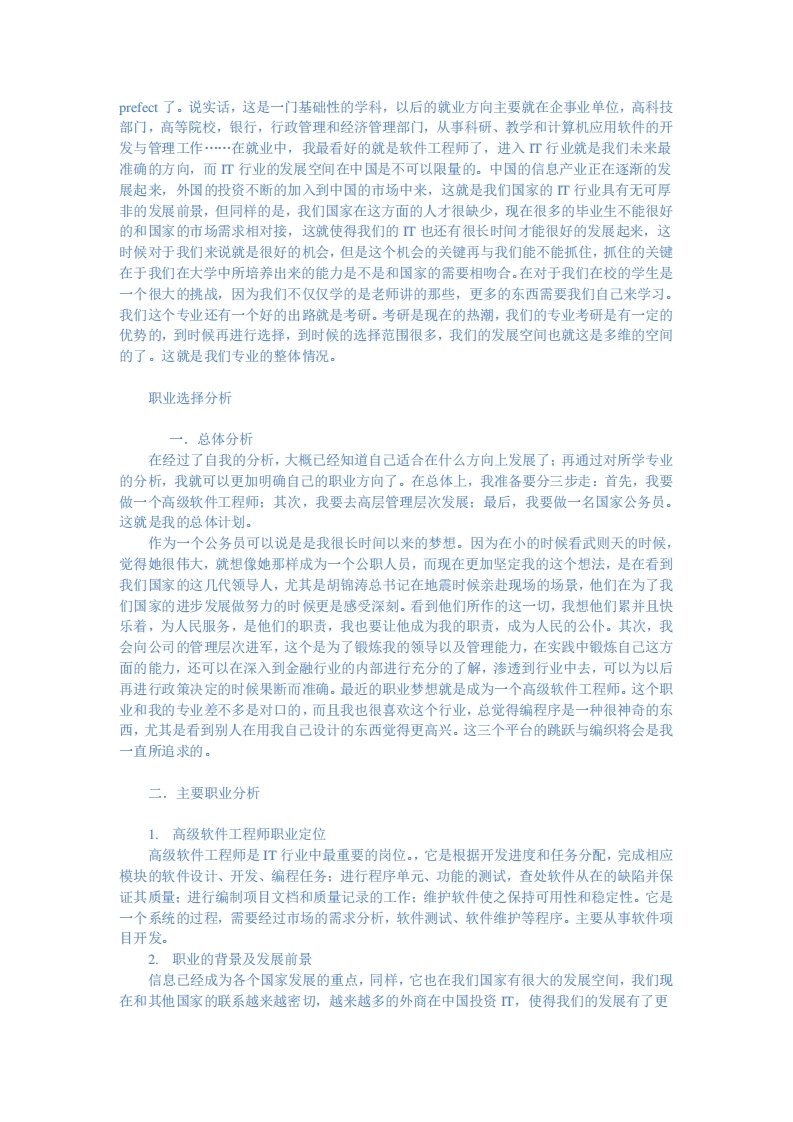 >职业生涯规规划范文:为梦想而搏击>电子商务专业:大学生职业生涯规划书范文>电子信息工程技术:职业规划书范文职业生涯规规划范文:为梦想而搏击前言职业规划看似遥远而渺茫,但是它却具有十分重大的意义。对职业进行规划就好像是大海中一叶扁舟的指向标,为我们明确了一个有一个的目标。进行职业规划可以引领着我们向成功的山峰攀登,给与我们以不解的源动力。那么,职业规划到底是什么呢?前言职业规划看似遥远而渺茫,但是它却具有十分重大的意义。对职业进行规划就好像是大海中一叶扁舟的指向标,为我们明确了一个有一个的目标。进行职业规划可以引领着我们向成功的山峰攀登,给与我们以不解的源动力。那么,职业规划到底是什么呢?它就是对我们的职业进行规划,使我们对自己所要做的努力及我们要走的方向都很清楚,很明朗,这对于我们进行搏击长空无疑是最大的牵引线。在进行职业规划的时候,我们都知道了自己的人生意义在何处,不会在以后回想起今天而为今天的虚度光阴而懊悔,我们也不会处在迷茫之中,在选择的岔路口徘徊,他给我们以果断的态度去面对每一次挑战,不会让我们进行折线攀登。这就是职业规划。自我分析在进行职业规划之前得需要对自己进行准确的定位,对自己进行各方面的分析,这样才可以把自己摆在一个合适的位置上,这样就会更加有利于我们以后的发展。在进行自我分析的是侯,我清楚的明白自己是一个什么样性格特点的人。我是一个既内向同时又兼属于外向的人。有的时候,我喜欢一个人静静的呆在角落里,听着淡淡的音乐,看着甜甜的小说,感受着阳光洒在我的每一寸皮肤上,享受着阳光的跳跃,聆听着这一切的美好,:而有的时候,我喜欢散步,在散步中沉思、总结:感受着思维的跳跃,捕捉着灵性的闪光。耐性,我的特色:坚持,我的写照:沉默,同样也是我的代名词。不管做什么,我有着阿Q般的积极心态,很多时候我会从好的方面去想,即使是再困难我也很阿Q,一句话,就是我的心情很阳光。专业的就业方向及就业方向我所学的是信息与计算科学专业。这个专业是好还是不好呢,也就众说纷纭吧。在我看来,每个专业也无所谓好无所谓不好,主要就看你自己怎么学了。对于我们这个专业来讲,如果我们把这个专业的缺点一一散而不精一一弥补上再与它的有点相结合起来,那就