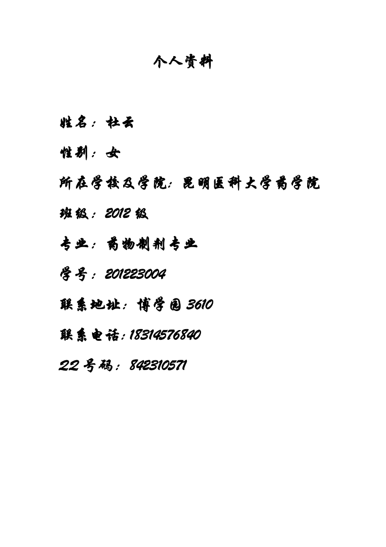 药物制剂-大学生职业生涯规划书348072@abc4个月前发布关注私信0.28MB12页035药物制剂-大学生职业生涯规划书此内容为付费资源,请付费后查看¥13¥22黄金会员免费钻石会员免费立即购买您当前未登录!建议登陆后购买,可保存购买订单付费资源 第1页 / 共12页 第2页 / 共12页 试读已结束,还剩10页,您可下载完整版后进行离线阅读 THE END规章制度 文本预览 大学生职业生涯规划书但愿每次国忆,对生活都不感到负疚。一郭小米2013.4.20 查看更多 收起部分 喜欢就支持一下吧收藏