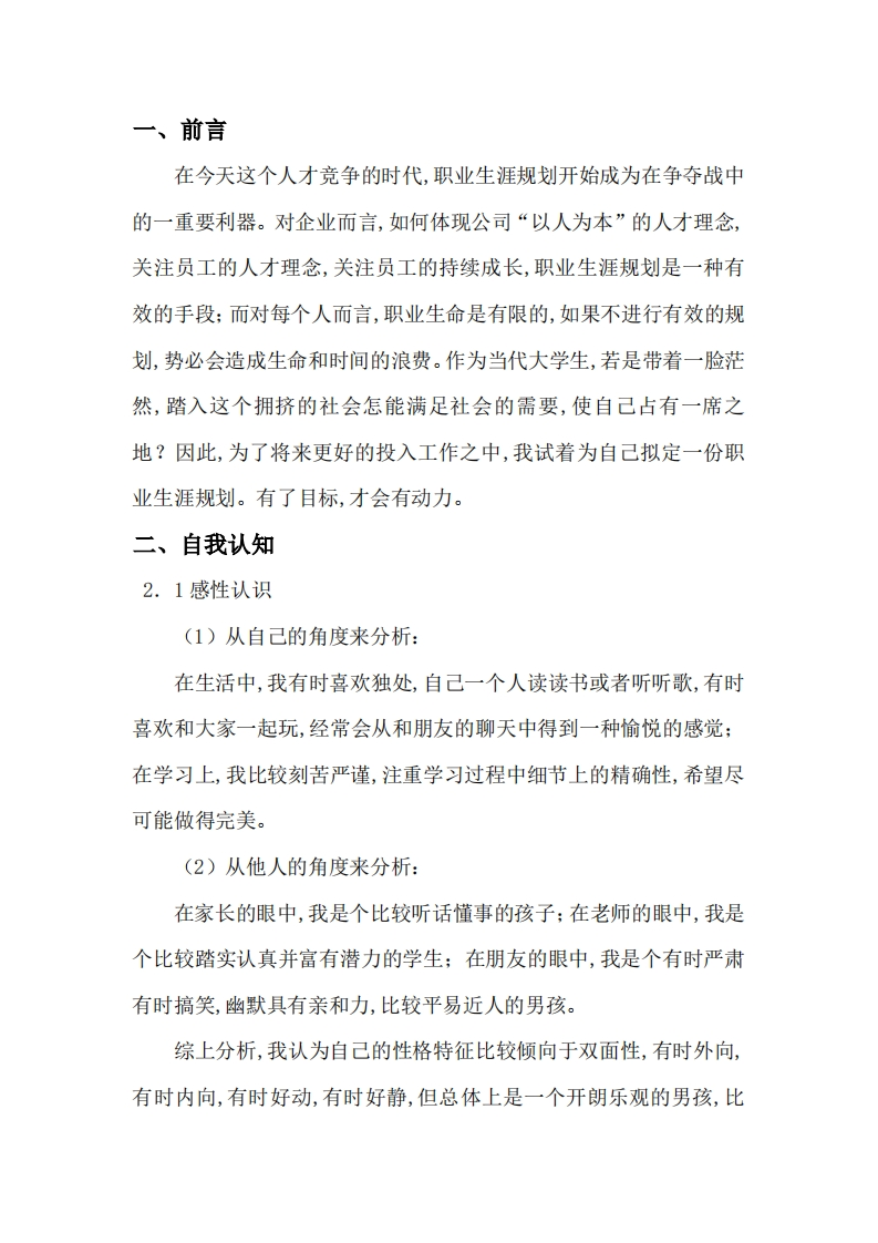 职业生涯发展规划书(应用化学专业)348072@abc4个月前发布关注私信0.17MB9页022职业生涯发展规划书(应用化学专业)此内容为付费资源,请付费后查看¥13¥22黄金会员免费钻石会员免费立即购买您当前未登录!建议登陆后购买,可保存购买订单付费资源 第1页 / 共9页 第2页 / 共9页 试读已结束,还剩7页,您可下载完整版后进行离线阅读 THE END规章制度 文本预览 目录一、前言二、自我认知2.1感性认识2.2理性认识2.3职业价值观2.4职业性格三、职业环境分析3.1就业形势3.2职业前景3.3专业特色四、职业设计规划4.1职业目标4.2发展路线4.3行动方案五、结束语 查看更多 收起部分 喜欢就支持一下吧收藏