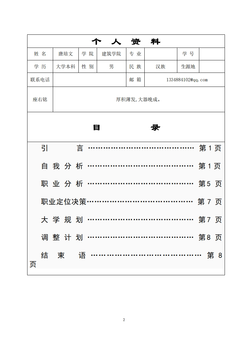 职业生涯规划书_4348072@abc3个月前发布关注私信0.44MB9页035职业生涯规划书_4此内容为付费资源,请付费后查看¥13¥22黄金会员免费钻石会员免费立即购买您当前未登录!建议登陆后购买,可保存购买订单付费资源 第1页 / 共9页 第2页 / 共9页 试读已结束,还剩7页,您可下载完整版后进行离线阅读 THE END规章制度 文本预览 内孝古工者火学1951大学生职业生涯发展与规划题目:大学及职业规划学生姓名:唐培文班级:授课教师:二0一二年六月 查看更多 收起部分 喜欢就支持一下吧收藏