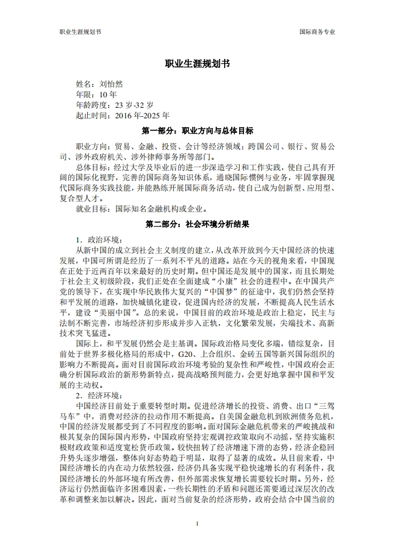 职业生涯规划书3348072@abc4个月前发布关注私信0.33MB10页044职业生涯规划书3此内容为付费资源,请付费后查看¥13¥22黄金会员免费钻石会员免费立即购买您当前未登录!建议登陆后购买,可保存购买订单付费资源 第1页 / 共10页 第2页 / 共10页 试读已结束,还剩8页,您可下载完整版后进行离线阅读 THE END规章制度 文本预览 职业生涯规划书姓名:刘怡然学院:商学院班级:国际商务(1)班学号:2012814011 查看更多 收起部分 喜欢就支持一下吧收藏