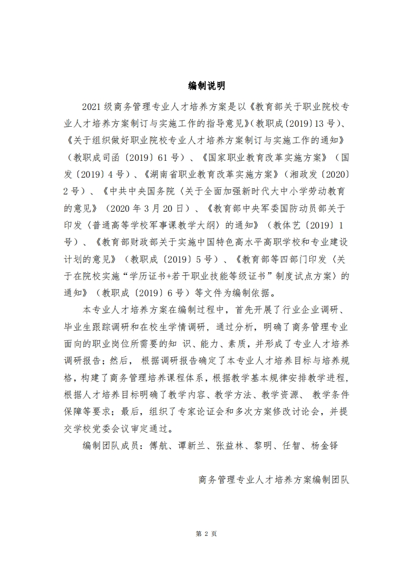 2021级商务管理专业人才培养方案348072@abc3个月前发布关注私信2.42MB60页0392021级商务管理专业人才培养方案此内容为付费资源,请付费后查看¥14¥18黄金会员免费钻石会员免费立即购买您当前未登录!建议登陆后购买,可保存购买订单付费资源 第1页 / 共60页 第2页 / 共60页 试读已结束,还剩58页,您可下载完整版后进行离线阅读 THE END管理学类绩效考核规章制度 文本预览 中国人寿保险职业学院CHINA LIFEINSURANCE PROFESSIONAL COLLECE保险职业学院专业人才培养方案专业(方向)名称商务管理所在系院财经商贸学院专业教研室管理教研室专业(方向)带头人傅航制定时间2018年10月修订时间2021年6月(第3修订)第1页 查看更多 收起部分 喜欢就支持一下吧收藏