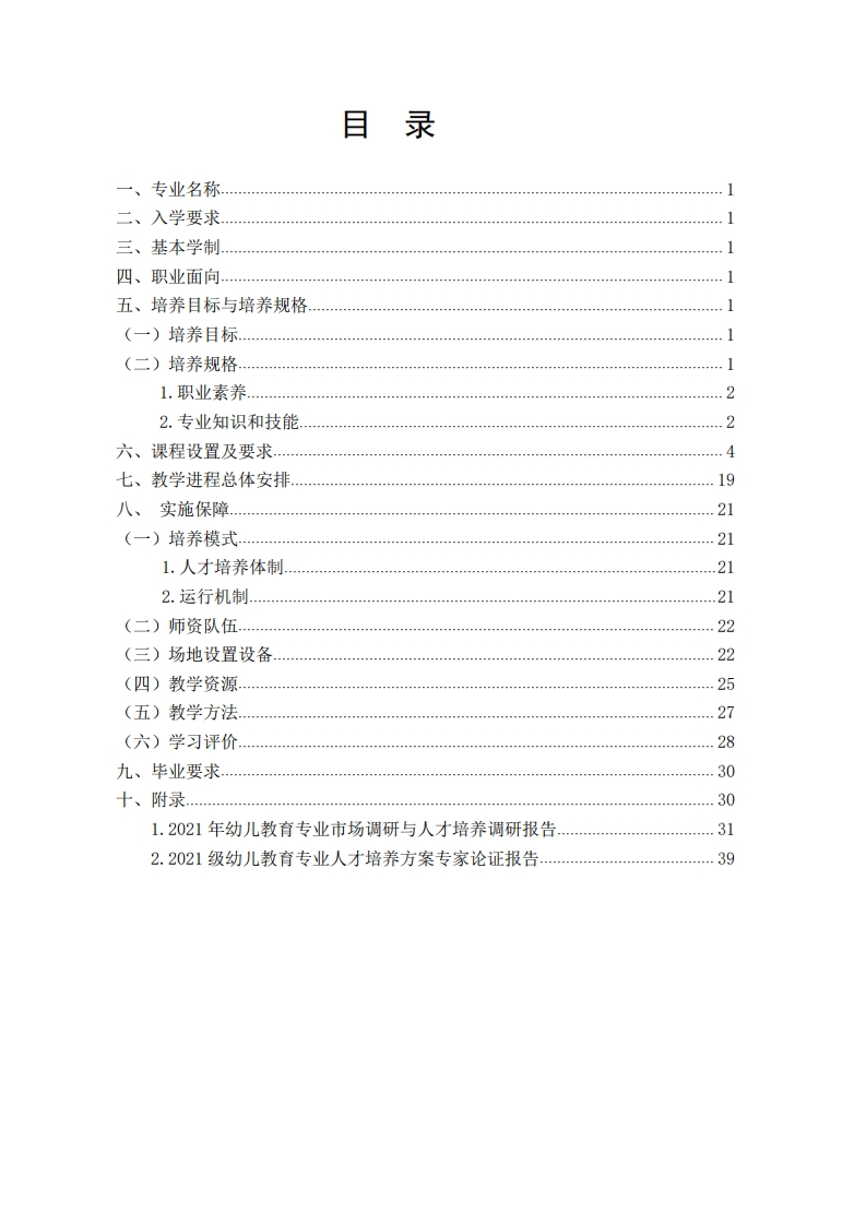 2021级幼儿教育专业人才培养方案1348072@abc3个月前发布关注私信0.63MB41页0232021级幼儿教育专业人才培养方案1此内容为付费资源,请付费后查看¥14¥18黄金会员免费钻石会员免费立即购买您当前未登录!建议登陆后购买,可保存购买订单付费资源 第1页 / 共41页 第2页 / 共41页 试读已结束,还剩39页,您可下载完整版后进行离线阅读 THE END管理学类绩效考核规章制度 文本预览 广西XXXXXXXXX学校幼儿教育专业2021级人才培养方案制定部门旅游教育系负责人签名:☐审核部门教务处负责人签名:☐审批人教学副校长签名:刻2021年6月 查看更多 收起部分 喜欢就支持一下吧收藏