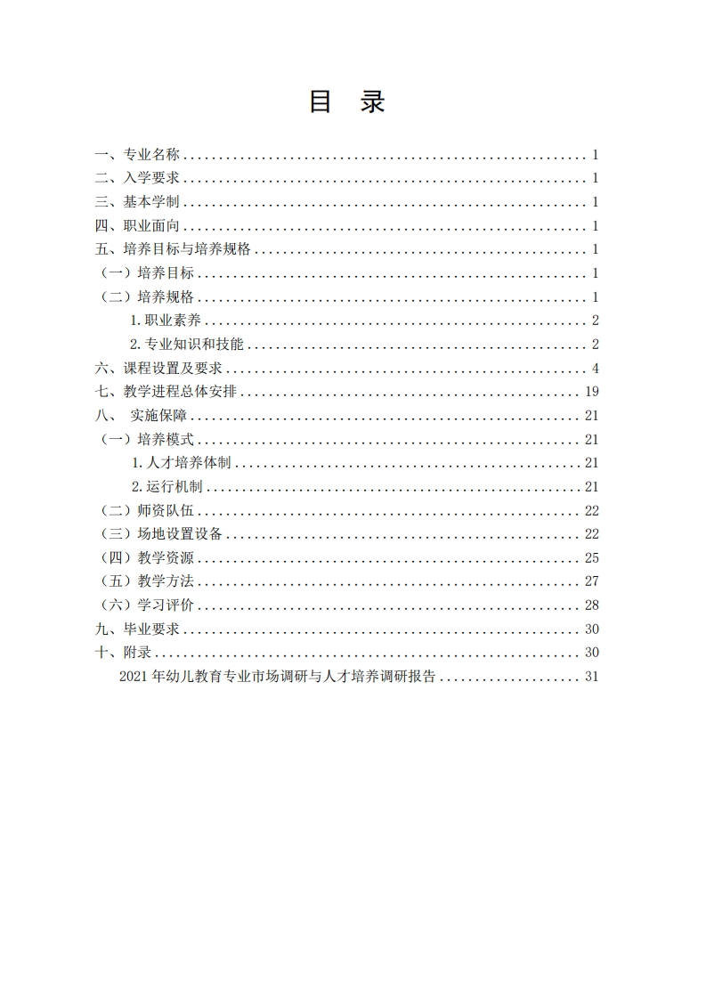 2021级幼儿教育专业人才培养方案2348072@abc3个月前发布关注私信0.60MB41页0402021级幼儿教育专业人才培养方案2此内容为付费资源,请付费后查看¥14¥18黄金会员免费钻石会员免费立即购买您当前未登录!建议登陆后购买,可保存购买订单付费资源 第1页 / 共41页 第2页 / 共41页 试读已结束,还剩39页,您可下载完整版后进行离线阅读 THE END管理学类绩效考核规章制度 文本预览 广西XXXXXXXXXXXXXXXX学校幼儿教育专业2021级人才培养方案制定部门旅游教育系负责人签名:审核部门教务处负责人签名:到审批人教学副校长签名:2021年6月 查看更多 收起部分 喜欢就支持一下吧收藏