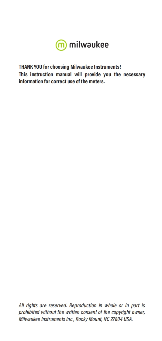 使用说明书手册指南MW106_11_20348072@abc6个月前发布关注私信7.70MB48页028使用说明书手册指南MW106_11_20此内容为付费资源,请付费后查看¥17¥19黄金会员免费钻石会员免费立即购买您当前未登录!建议登陆后购买,可保存购买订单付费资源 第1页 / 共48页 第2页 / 共48页 试读已结束,还剩46页,您可下载完整版后进行离线阅读 THE END说明书手册 文本预览 INSTRUCTION MANUALMW105 MW106 MAXpH/ORP/TemperaturePortable Metersm milwaukeeMEASUREpH997012585p4附…3094N/OFRCLRANGECLEARSETUPGLPACCEPMW106 MAXpH/ORP/Temp MeterSATISFACTIONGUARANTEEDmmilwaukee 查看更多 收起部分 喜欢就支持一下吧收藏