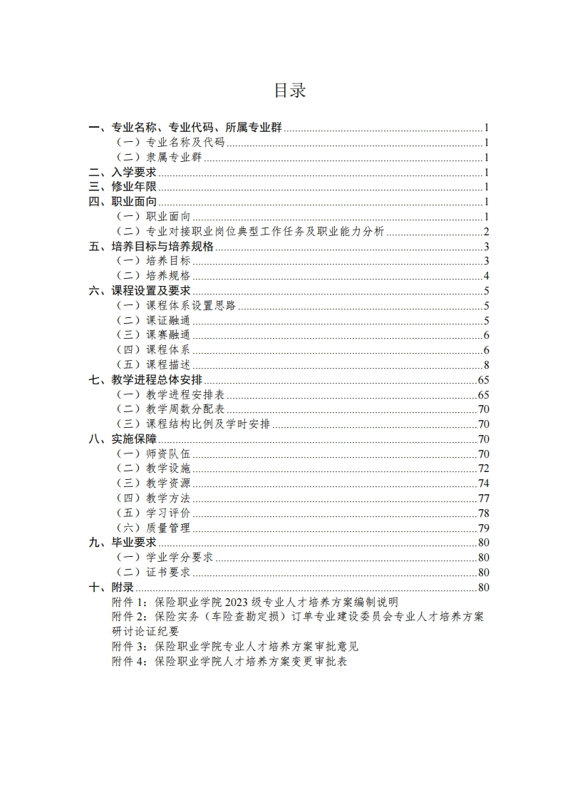 2023级保险实务(车险查勘定损)订单专业人才培养方案348072@abc4个月前发布关注私信6.15MB89页0382023级保险实务(车险查勘定损)订单专业人才培养方案此内容为付费资源,请付费后查看¥14¥18黄金会员免费钻石会员免费立即购买您当前未登录!建议登陆后购买,可保存购买订单付费资源 第1页 / 共89页 第2页 / 共89页 试读已结束,还剩87页,您可下载完整版后进行离线阅读 THE END管理学类绩效考核规章制度 文本预览 中国人寿保险职业学院CHINA LIFEINSURANCE PROFESSIONAL COLLEGE保险职业学院专业人才培养方案专业(方向)名称保险实务(车险查勘定损)订单所在教学单位金融保险学院专业教研室车险教研室专业(方向)带头人常伟制定时间2023年6月 查看更多 收起部分 喜欢就支持一下吧收藏