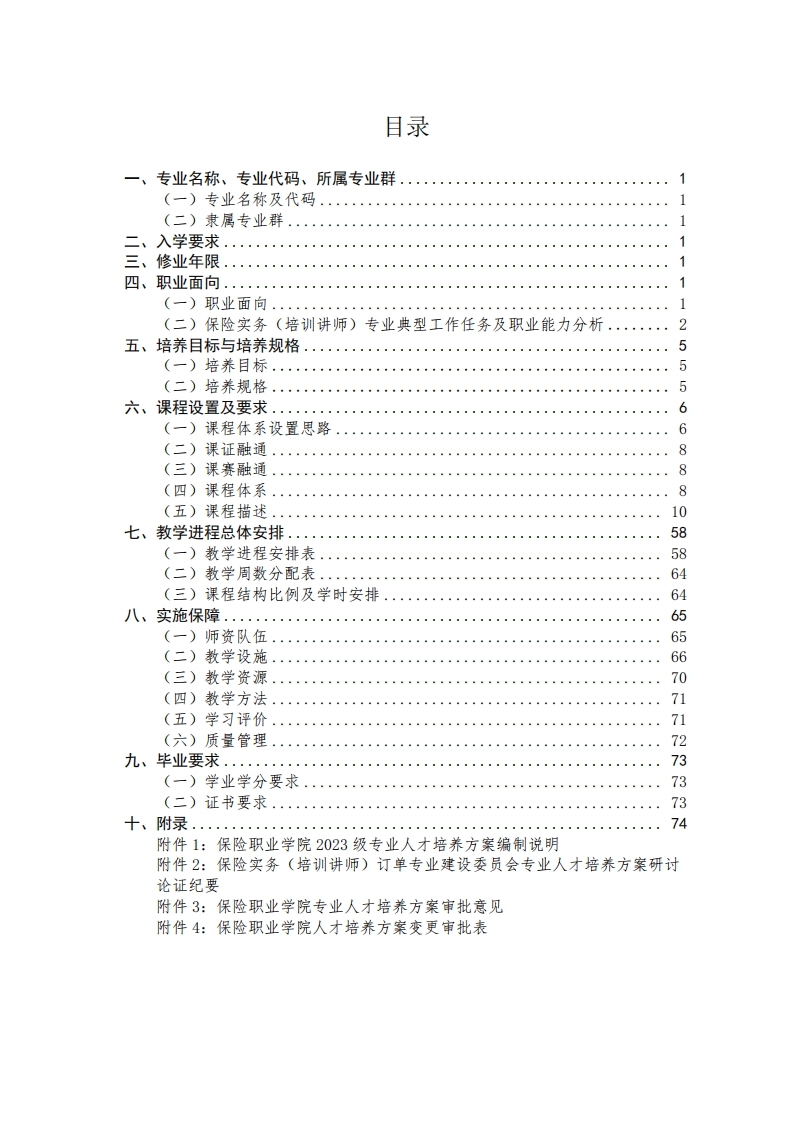 2023级保险实务(培训讲师)订单专业人才培养方案348072@abc2个月前发布关注私信5.34MB82页042132023级保险实务(培训讲师)订单专业人才培养方案此内容为付费资源,请付费后查看¥14¥18黄金会员免费钻石会员免费立即购买您当前未登录!建议登陆后购买,可保存购买订单付费资源 第1页 / 共82页 第2页 / 共82页 试读已结束,还剩80页,您可下载完整版后进行离线阅读 © 版权声明文章版权归作者所有,未经允许请勿转载。THE END管理学类绩效考核规章制度 文本预览 中国人寿保险职业学院CHINA LIFEINSURANCE PROFESSIONAL COLLEGE保险职业学院专业人才培养方案专业(方向)名称保险实务(培训讲师)订单班所在教学单位金融保险学院专业教研室保险营销教研室专业(方向)带头人谢汀芬制定时间2023年6月 查看更多 收起部分 喜欢就支持一下吧点赞13 分享QQ空间微博QQ好友海报分享复制链接收藏