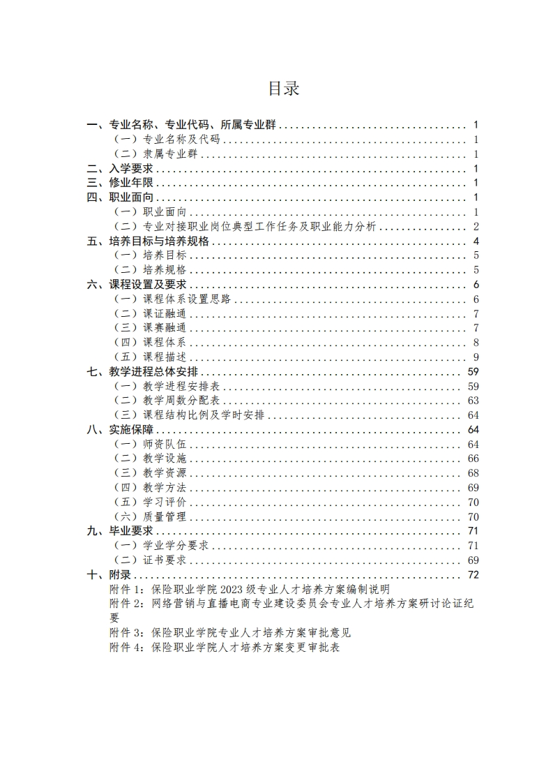 2023级网络营销与直播电商专业人才培养方案_2348072@abc4个月前发布关注私信5.18MB80页0242023级网络营销与直播电商专业人才培养方案_2此内容为付费资源,请付费后查看¥14¥18黄金会员免费钻石会员免费立即购买您当前未登录!建议登陆后购买,可保存购买订单付费资源 第1页 / 共80页 第2页 / 共80页 试读已结束,还剩78页,您可下载完整版后进行离线阅读 THE END管理学类绩效考核规章制度 文本预览 中国人寿保险职业学院CHINA LIFEINSURANCE PROFESSIONAL COLLEGE保险职业学院专业人才培养方案专业(方向)名称网络营销与直播电商所在教学单位金融保险学院专业教研室保险营销教研室专业(方向)带头人谢汀芬制定时间2023年6月 查看更多 收起部分 喜欢就支持一下吧收藏