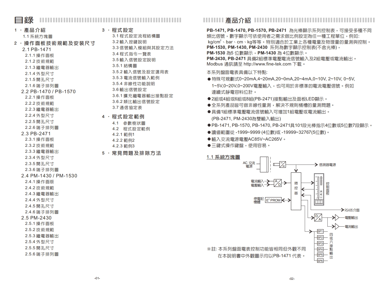 FineTekPB/PM系列盤面電錶操作手冊0880088005908800008800200=250日82H9泪8258泪桓達料技股份有限公司新北市土城工業區自强街16號Tel:886-2-22696789FaX:886-2-22686682E-mail:info@fine-tek.com http://www.fine-tek.com08-PBXXX-B1-CK,01/21/2013