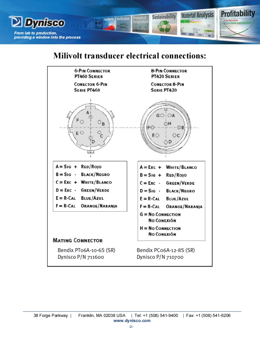 SustainabilityMaterial AnalysisProfitabilityDyniscoPressureFrom lab to production,providing a window into the processDynisco model 1480 and 1490 wiring quick start instructions(for millivolt transducers)Terminal Schematic:POWERINPUT2265v0c-+留⊙深20-48vacI7100-240VAC L N68OPTION AOPTION 1Double Pole SwitchRS485mA or VDCComms Retransmission315mA2448Vac8A BC-亩应亩西亩应它囟囟国呈竖)回程得回回口回回可回回可TTTTI+Strain Gauge SignalThermocoupleINPUTLinear V/mV-Linear mAUNIVERSALINPUTTerminal connections:Terminal numberWire color6Pin8Pin2 (Sig +RedAB3(Sig-)BlackBD4(Exc+)】WhiteCA5(Exc-)GreenD6(Rcal)BlueEE7(RcalOrangeFFG(no connection)H(no connection)38 Forge Parkway IFranklin,MA02038USA|Tel:+1(508)541-9400|Fax:+1(508)541-6206www.dynisco.com-1-