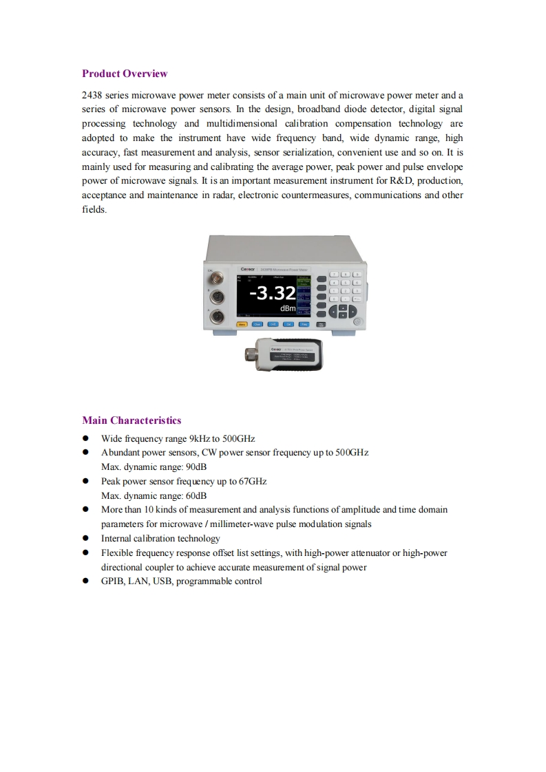 2438-Series-Microwave-Power-Meter-规格参数手册348072@abc6个月前发布关注私信0.52MB12页0282438-Series-Microwave-Power-Meter-规格参数手册此内容为付费资源,请付费后查看¥22¥33黄金会员免费钻石会员免费立即购买您当前未登录!建议登陆后购买,可保存购买订单付费资源 第1页 / 共12页 第2页 / 共12页 试读已结束,还剩10页,您可下载完整版后进行离线阅读 THE END说明书手册 文本预览 Ceyear2438CA/CB/PA/PB Microwave Power Meter(9kHz~500GHz)-3.32=dBmagD网o可aSCeyear Technologies Co.,Ltd 查看更多 收起部分 喜欢就支持一下吧收藏