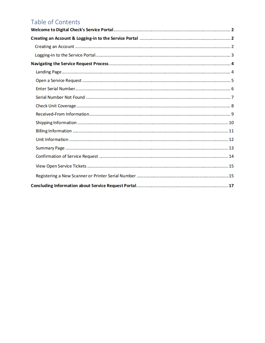 DCC-Service-Portal-Customer-操作说明书手册348072@abc4个月前发布关注私信1.52MB19页047DCC-Service-Portal-Customer-操作说明书手册此内容为付费资源,请付费后查看¥22¥33黄金会员免费钻石会员免费立即购买您当前未登录!建议登陆后购买,可保存购买订单付费资源 第1页 / 共19页 第2页 / 共19页 试读已结束,还剩17页,您可下载完整版后进行离线阅读 THE END说明书手册 文本预览 ②2卡2022Service PortalCustomer User ManualSUBMITTING STATUS UPDATES FOR SERVICE REQUESTSSERVICE PORTAL CUSTOMER USER MANUALDIGITAL CHECK CORP.630 Dundee Rd,STE 210 Northbrook,IL 60062 查看更多 收起部分 喜欢就支持一下吧收藏