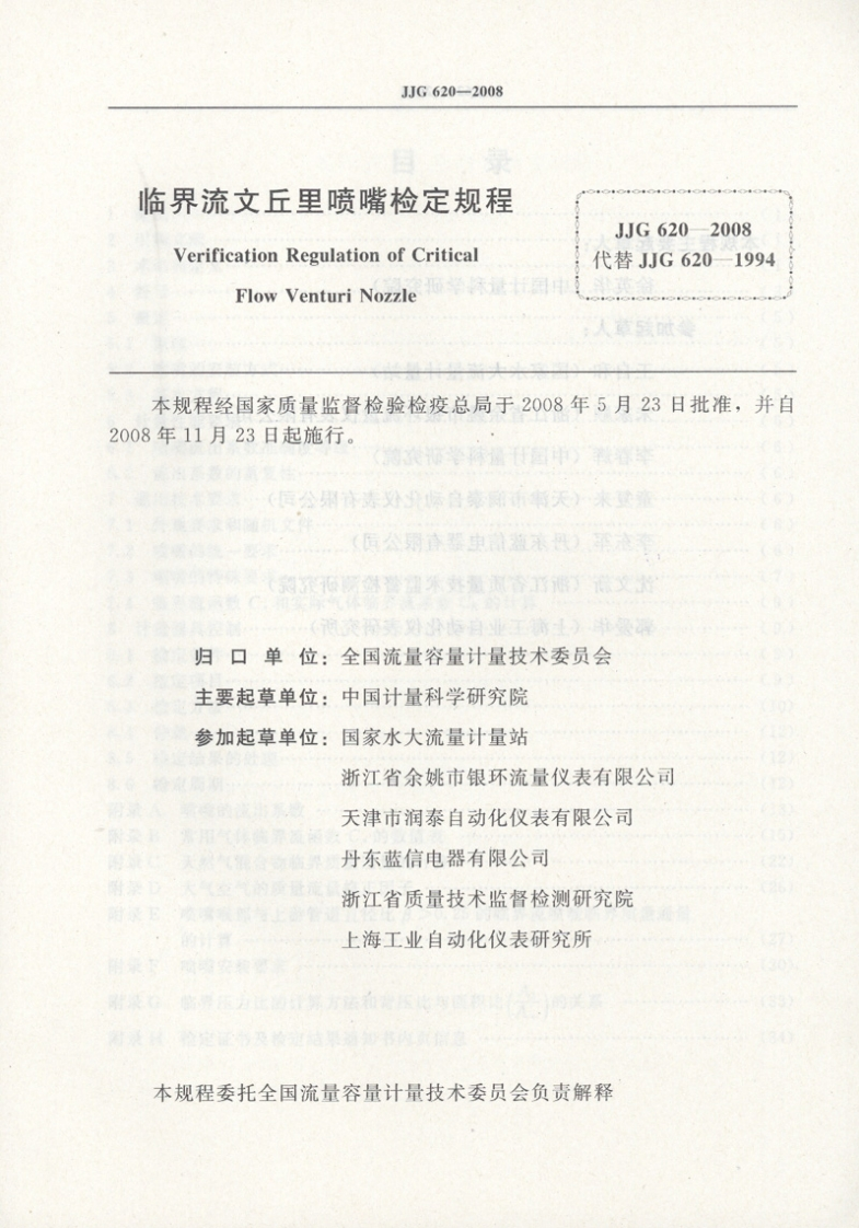 JJG620-2008临界流文丘里喷嘴348072@abc5个月前发布关注私信70.97MB46页048JJG620-2008临界流文丘里喷嘴此内容为付费资源,请付费后查看¥17¥22黄金会员免费钻石会员免费立即购买您当前未登录!建议登陆后购买,可保存购买订单付费资源 第1页 / 共46页 第2页 / 共46页 试读已结束,还剩44页,您可下载完整版后进行离线阅读 THE END标准规范 文本预览 J可G中华人民共和国国家计量检定规程JJG620-2008临界流文丘里喷嘴Critical Flow Venturi Nozzle2008-05-23发布2008-11-23实施国家质量监督检验检疫总局发布 查看更多 收起部分 喜欢就支持一下吧收藏