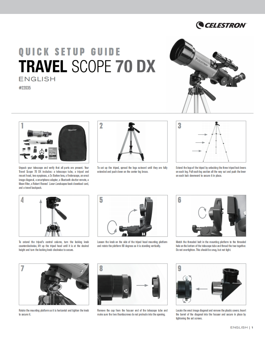 22035TravelScope70DX_with81035Smartphne_快速操作说明书手册_5lng_F348072@abc4个月前发布关注私信5.86MB32页04622035TravelScope70DX_with81035Smartphne_快速操作说明书手册_5lng_F此内容为付费资源,请付费后查看¥22¥33黄金会员免费钻石会员免费立即购买您当前未登录!建议登陆后购买,可保存购买订单付费资源 第1页 / 共32页 第2页 / 共32页 试读已结束,还剩30页,您可下载完整版后进行离线阅读 THE END说明书手册 文本预览 CELESTRONTRAVEL SCOPE 70 DX#22035CELESTRONQUICK SETUP GUIDEGUIDE DE DEMARRAGE RAPIDEKURZANLEITUNG ZUR EINRICHTUNGGUIDA RAPIDA ALLA CONFIGURAZIONEGUIA DE INSTALACION RAPIDA 查看更多 收起部分 喜欢就支持一下吧收藏