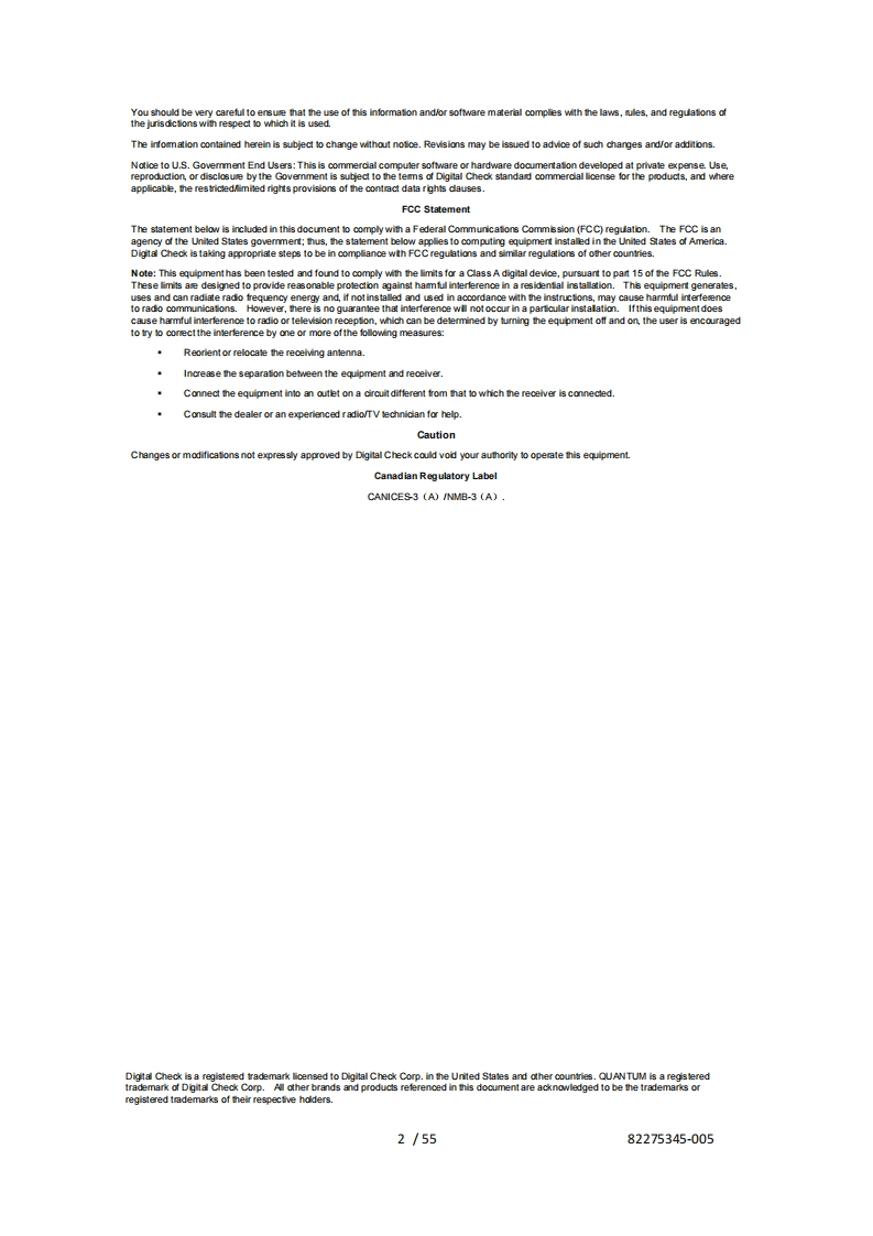 ②21T长QDS20012-SYSQDS20012-SYS-FEQUANTUM DS®SeriesInstallation and Operations GuideMarch 20242024 Digital Check Corp,Inc.All rights reserved.NO WARRANTIES OF ANY NATURE ARE EXTENDED BY THIS DOCUMENT.Any product or related infomation described herein is onlyfumished pursuant and subject to the terms and conditons of a duly executed agreement to purchase or lease equipment or to lcense software.The only warranties made by Digital Check Corp.,if any,with respectto the products descnbed in this document are setforth in suchect,special,or consequential damages1/5582275345-005
