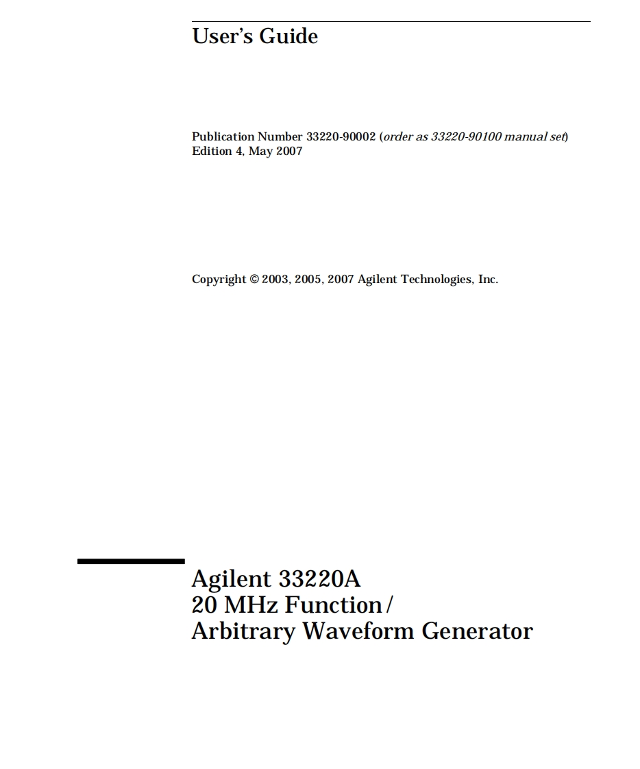 33220A–用户操作维护说明书手册348072@abc6个月前发布关注私信3.03MB363页03633220A–用户操作维护说明书手册此内容为付费资源,请付费后查看¥22¥33黄金会员免费钻石会员免费立即购买您当前未登录!建议登陆后购买,可保存购买订单付费资源 第1页 / 共363页 第2页 / 共363页 试读已结束,还剩361页,您可下载完整版后进行离线阅读 THE END说明书手册 文本预览 Agilent 33220A20 MHz Waveform GeneratorUser's GuideAgilent Technologies 查看更多 收起部分 喜欢就支持一下吧收藏