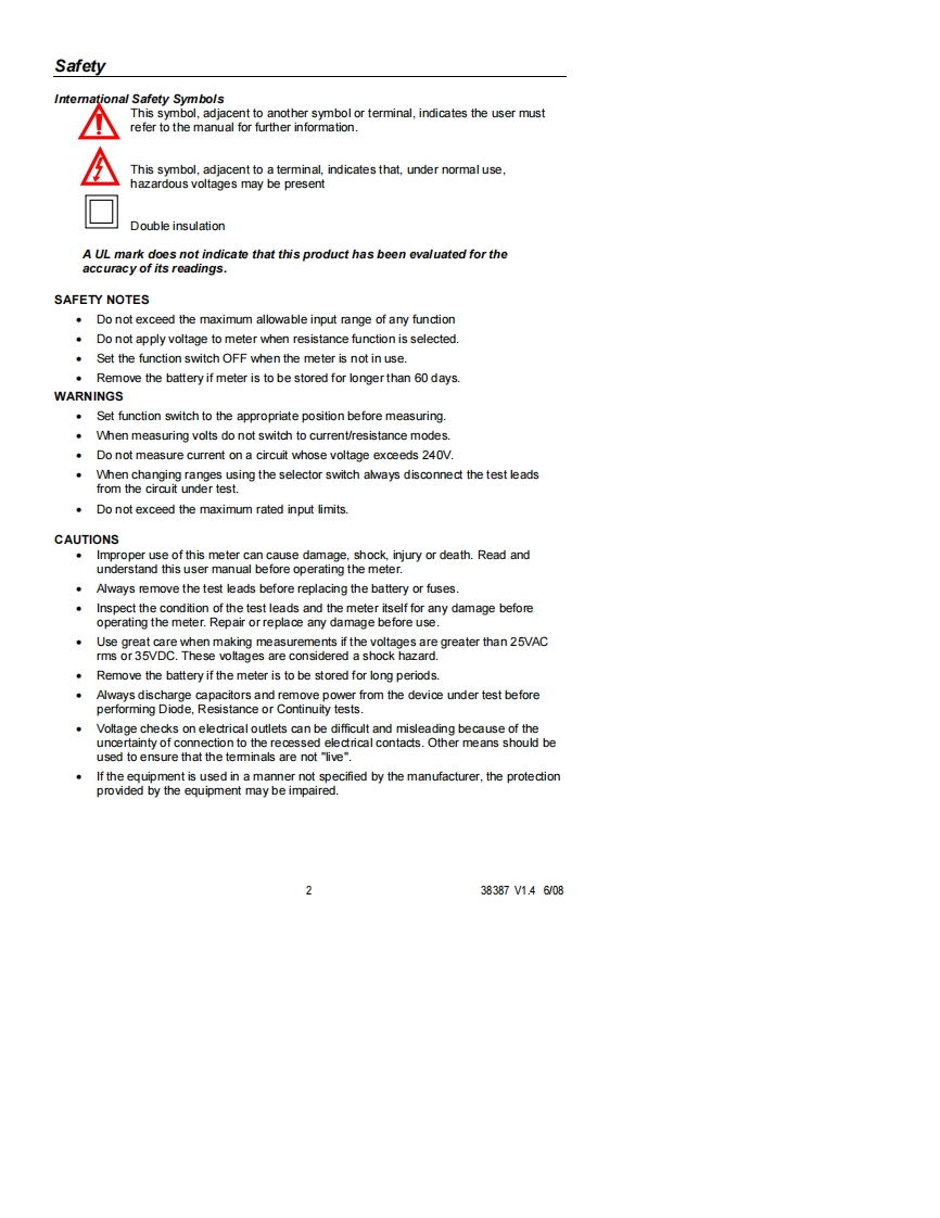 38387_安装调试说明书手册348072@abc4个月前发布关注私信0.19MB6页03238387_安装调试说明书手册此内容为付费资源,请付费后查看¥22¥33黄金会员免费钻石会员免费立即购买您当前未登录!建议登陆后购买,可保存购买订单付费资源 第1页 / 共6页 第2页 / 共6页 试读已结束,还剩4页,您可下载完整版后进行离线阅读 THE END说明书手册 文本预览 User's GuideEXTECH-INSTRUMENTSA FLIR COMPANY600A AC Clamp MeterModel 38387AC CLAMP METER脚OFFEXTECH38387199.9照一微ACOMV/R 查看更多 收起部分 喜欢就支持一下吧收藏
