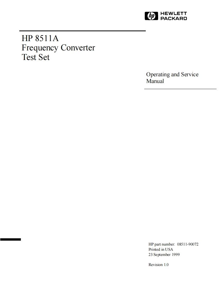 ErrataTitle Document Type:8511A Operating ServiceManualManual Part Number:08511-90072Revision Date:September 1999HP References in this ManualThis manual may contain references to HP or Hewlett-Packard.Please note that Hewlett-Packard's former test and measurement,semiconductor products and chemical analysisbusinesses are now part of Agilent Technologies.We have made no changes to thismanual copy.The HP XXXX referred to in this document is now the Agilent XXXXFor example,model number HP8648A is now model number Agilent 8648A.About this ManualWe've added this manual to the Agilent website in an effort to help you support yourproduct.This manual provides the best information we could find.It may be incompleteor contain dated information,and the scan quality may not be ideal.If we find a bettercopy in the future,we will add it to the Agilent website.Support for Your ProductAgilent no longer sells or supports this product.You will find any other availableproduct information on the Agilent Test Measurement website:www.tm.agilent.comSearch for the model number of this product,and the resulting product page will guideyou to any available information.Our service centers may be able to perform calibrationif no repair parts are needed,but no other support from Agilent is available.Agilent Technologies