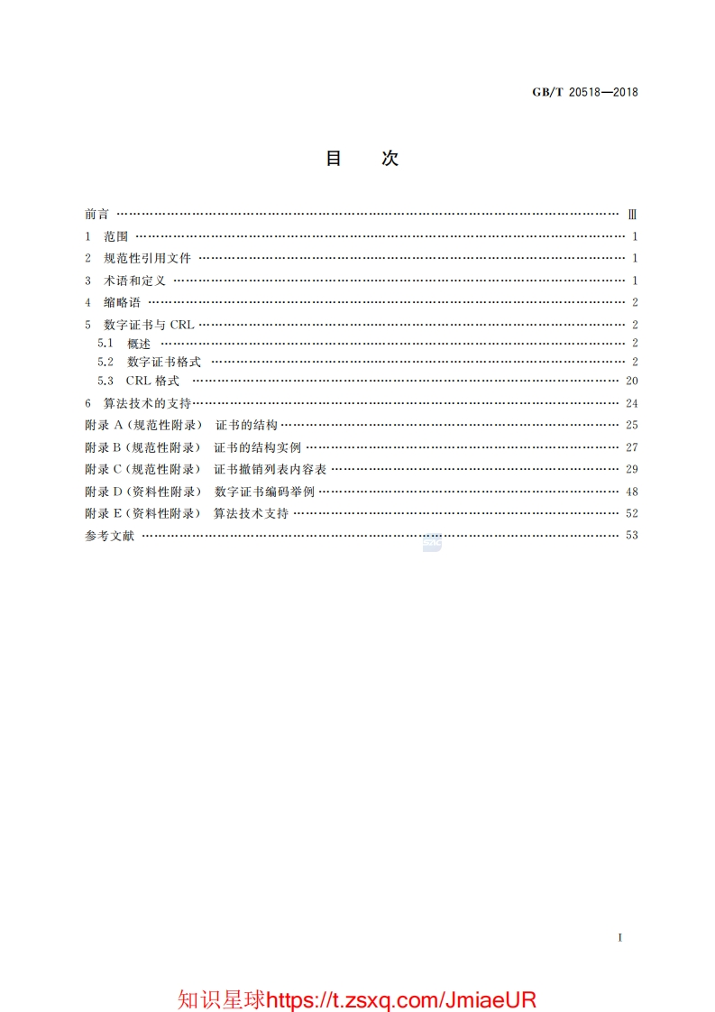 ICS35.040L80中华人民共和国国家标准GB/T20518-2018代替GB/T20518一2006信息安全技术公钥基础设施数字证书格式Information security technology-Public key infrastructure-Digital certificate format2018-06-07发布2019-01-01实施国家市场监督管理总局中国国家标准化管理委员会发布知识星球https:/t.Zsxq.com/JmiaeUR