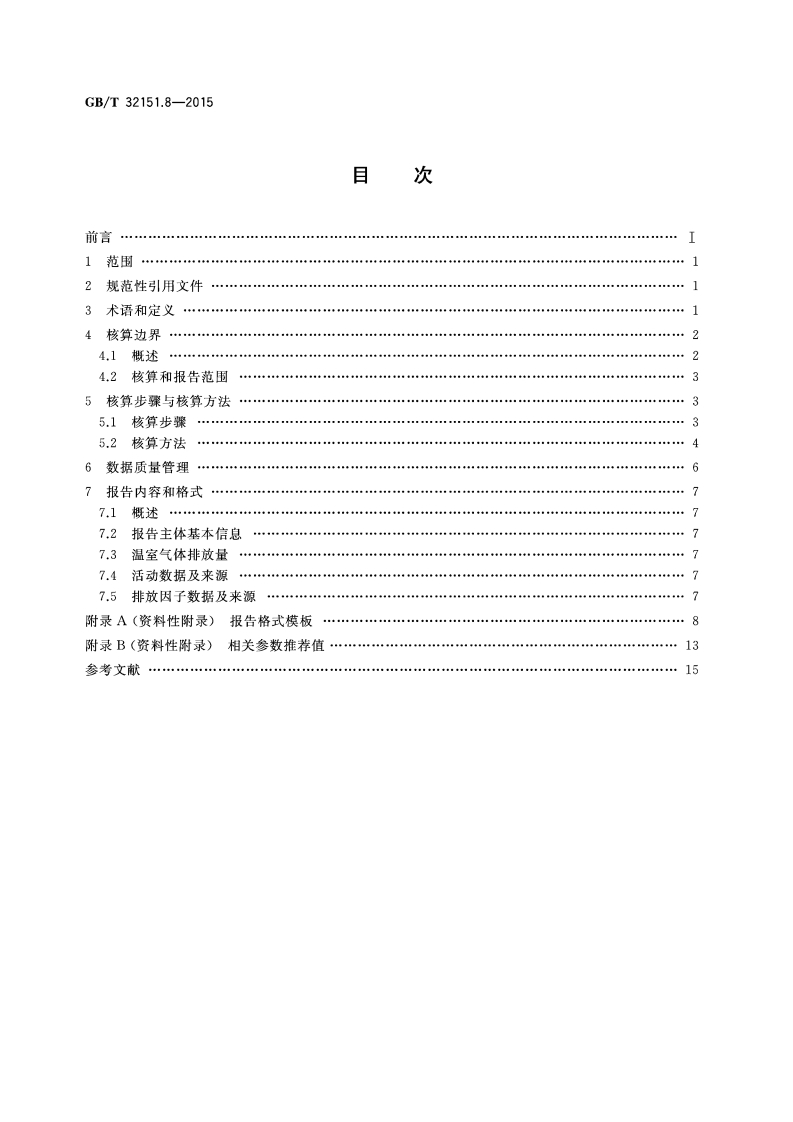 ICs13.020.10Z04中华人民共和国国家标准GB/T32151.8-2015温室气体排放核算与报告要求第8部分:水泥生产企业Requirements of the greenhouse gas emission accounting andreporting-Part 8:Cement enterprise2015-11-19发布2016-06-01实施中华人民共和国国家质量监督检验检疫总局中国国家标准化管理委员会发布