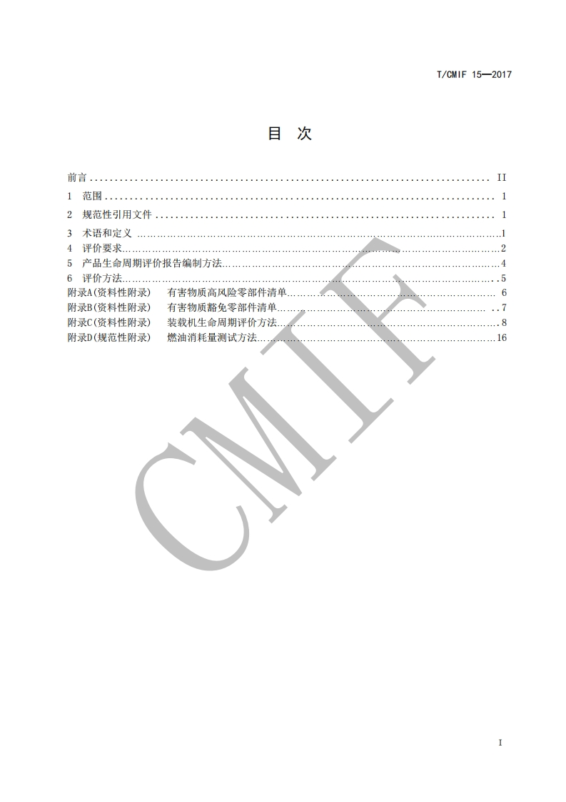 绿色设计产品评价技术规范装载机348072@abc6个月前发布关注私信0.49MB20页026绿色设计产品评价技术规范装载机此内容为付费资源,请付费后查看¥23¥31黄金会员免费钻石会员免费立即购买您当前未登录!建议登陆后购买,可保存购买订单付费资源 第1页 / 共20页 第2页 / 共20页 试读已结束,还剩18页,您可下载完整版后进行离线阅读 THE END说明书手册 文本预览 ICs53.100P97CMIF中国机械工业联合会团体标准T/CMIF15-2017绿色设计产品评价技术规范装载机Technical specification for green-design product assessment -Loader2017-11-01发布2017-11-01实施中国机械工业联合会绿色制造产业技术创新战略联盟发布 查看更多 收起部分 喜欢就支持一下吧收藏