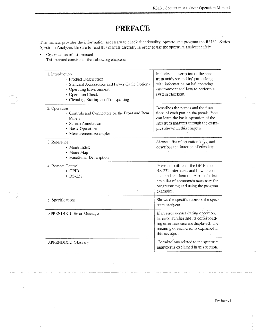 Certificate of Conformity(€This is to certify,thatSpectrum AnalyzerR3131 Seriesinstrument,type,designationcomplies with the provisions of the EMC Directive 89/336/EEC in accordance withEN50081-1 and EN50082-1 and Low Voltage Directive 73/23/EEC in accordance withEN61010.ADVANTEST Corp.ROHDE&SCHWARZTokyo,JapanEngineering and Sales GmbHMunich,Germany3131.02
