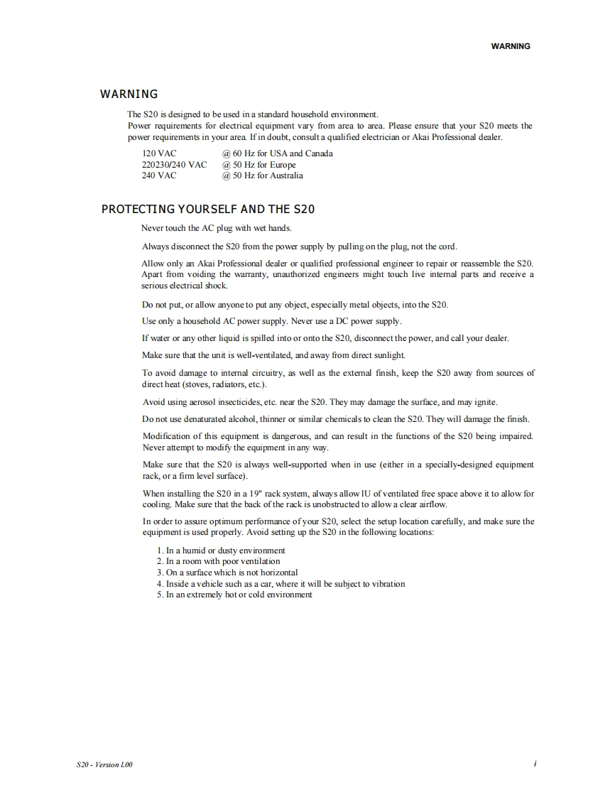 AkaiS20UserManual348072@abc4个月前发布关注私信1.52MB58页037AkaiS20UserManual此内容为付费资源,请付费后查看¥21¥30黄金会员免费钻石会员免费立即购买您当前未登录!建议登陆后购买,可保存购买订单付费资源 第1页 / 共58页 第2页 / 共58页 试读已结束,还剩56页,您可下载完整版后进行离线阅读 THE END说明书手册 文本预览 professionaAKAI写己口MIDI STEREO DIGITALPHRASE SAMPLERWARNINGTo prevent fire or shock hazard,do notexpose this appliance to rain or moisture.Operator's Manual 查看更多 收起部分 喜欢就支持一下吧收藏