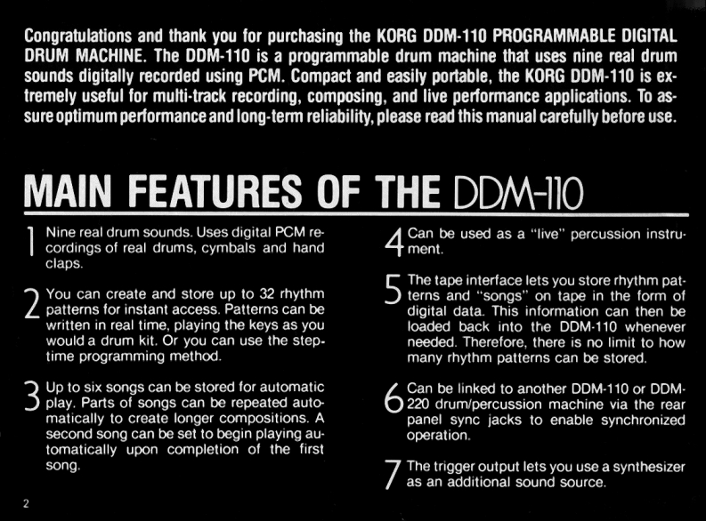 korg-DDM-110-user-使用说明书手册348072@abc3个月前发布关注私信5.16MB55页020korg-DDM-110-user-使用说明书手册此内容为付费资源,请付费后查看¥21¥30黄金会员免费钻石会员免费立即购买您当前未登录!建议登陆后购买,可保存购买订单付费资源 第1页 / 共55页 第2页 / 共55页 试读已结束,还剩53页,您可下载完整版后进行离线阅读 THE END说明书手册 文本预览 KORGPROGRAMMABLE DIGITAL DRUM MACHINE DOM-110UP/ENTERSTART/STOPSONGPATTERN-%SUPERPROGRAMMABLE DIGITAL DRUM MACHINE DDM-110OWNER'S MANUAL 查看更多 收起部分 喜欢就支持一下吧收藏