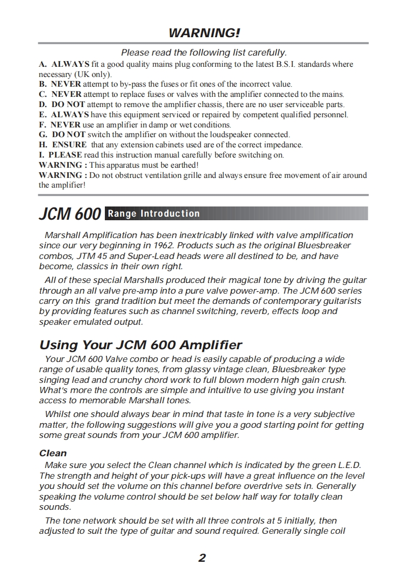 c儿aaha形JCM600JCM600 Head&JCM601 &JCM602CombosMarshall Amplification plcDenbigh Road,Bletchley,Milton Keynes,MK1 1DQ,EnglandTel:(01908375411Fax:(01908)376118Web Site-http://www.marshallamps.comWhilst the information contained herein is correct at the time of publication,due to our policy of constant improvement and development,MarshallAmplification plc reserve the right to alter specifications without prior notice.Nov'98Handbook7