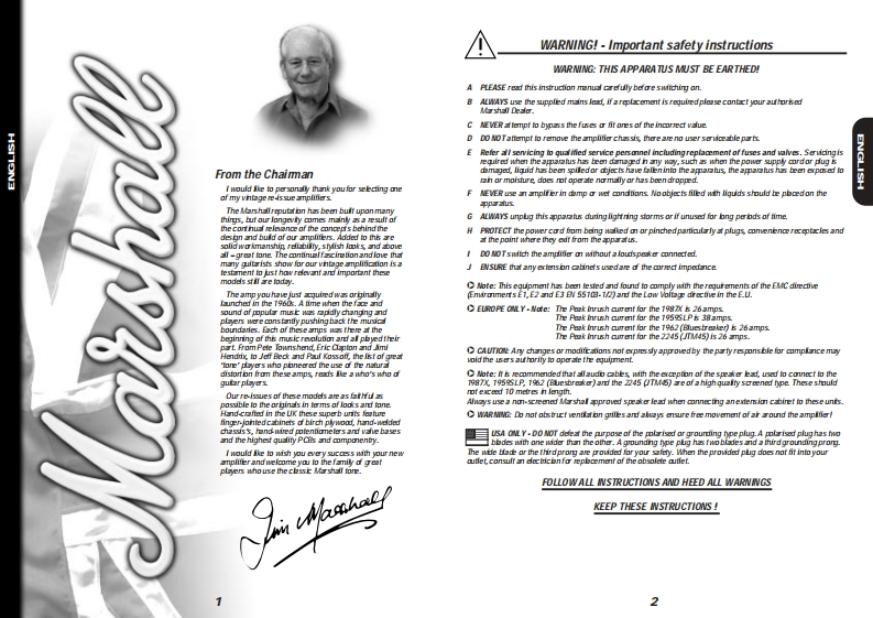 MARSHALLvintage-reissue-操作说明书手册348072@abc3个月前发布关注私信0.70MB6页028MARSHALLvintage-reissue-操作说明书手册此内容为付费资源,请付费后查看¥21¥30黄金会员免费钻石会员免费立即购买您当前未登录!建议登陆后购买,可保存购买订单付费资源 第1页 / 共6页 第2页 / 共6页 试读已结束,还剩4页,您可下载完整版后进行离线阅读 THE END说明书手册 文本预览 c儿rieshaleAMPLIFICATION山1959SLPM·0y→0·1987X2245‘JTM451962‘Bluesbreaker'otuiag·37023·000,2rshalOwners Manual 查看更多 收起部分 喜欢就支持一下吧收藏