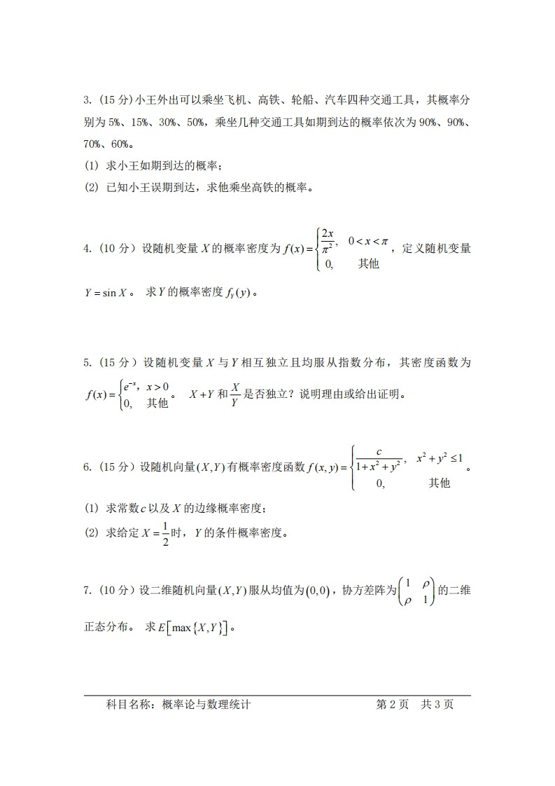 中国科学院大学2020年招收攻读硕士学位研究生入学统一考试试题科目名称:概率论与数理统计考生须知:1.本试卷满分为150分,全部考试时间总计180分钟。2.所有答案必须写在答题纸上,写在试题纸上或草稿纸上一律无效。本试卷可能用到的常数:分别以Z(α),x(m)表示标准正态分布、卡方分布的上a分位数,Z(0.005)=2.57,Z(0.01)=2.33,Z0.025)=1.96,,Z(0.05)=1.65,xds(7)=14.067,X6s(8)=15.507,x6s(8)=16.919。1.(20分)设有n个事件A,…,An,其概率分别为A,,Pn,设0
