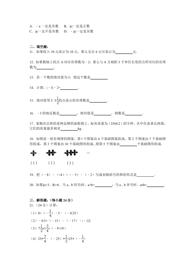 2015-2016学年江苏省连云港市海庆中学七年级(上)第一次月考数学试卷一、选择题:(每小题2分)1.一专的相反数是()A.3 B.-3 C.D.-32.下列各组数中,不是互为相反意义的量的是()A.收入200元与支出20元B.上升10米和下降7米C.超过0.05mm与不足0.03mD.增大2岁与减少2升3.下列-组数:-8,27,-3号罗0666,0.2,00808008(相都两个8之间依次增加一个0)其中是无理数的有()A.0个B.1个C.2个D.3个4.如果a+b=0,那么a,b两个实数一定是()A.都等于0B.一正一负C.互为相反数D.互为倒数5.绝对值大于或等于1,而小于4的所有的整数的和是()A.8B.7C.6D.06.下列有理数大小关系判断正确的是()A(诗>动B.0>|-101C.|-3引<+3D.-1>-0.017.比-6.1大,而比1小的整数的个数是()A.6B.7C.8D.98.一个数的倒数等于它本身的数是()A.1B.-1C.±1D.±1和09.实数a,b在数轴上的对应点如图所示,则下列不等式中错误的是()a b oA.ab>0 B.a+b<0 C.1D.a-b