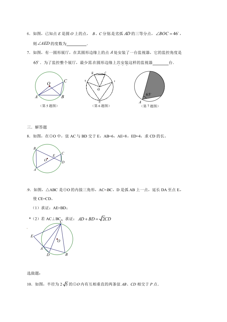 泰兴市西城中学初三数学同步训练(30)范围:圆周角(1)命题、审核:刘海军班级学号姓名成绩家长签字一.选择题1.如图,在⊙0中,圆心角∠BOC=60°,则圆周角∠BAC等于()A.60°B.50°C.40°D.30°2.将量角器按如图所示的方式放置在三角形纸板上,使点C在半圆上.点A、B的读数分别为86°、30°,则∠ACB的大小为()A.15°B.28°C.29°D.34°3.如图,在⊙O中,∠AOB的度数为m,C是弧ACB上一点,D、E是弧AB上不同的两点(不与4,B两点重合),则∠D+∠E的度数为()A.mB.180-mmC.90°+mD.CD(第1题图)(第2趣图)(第3趣图)*4.如图,A、B、C、D为⊙O的四等分点,动点P从圆心O出发,沿O→C→D→O路线作匀速运动.设运动时间为t(s),∠APB=y(),则下列图象中表示y与t之.间函数关系最恰当的是()手从(第4题图)二.填空题5.如图,A、B、C是⊙O上三点,∠ACB=40°,则∠ABO=