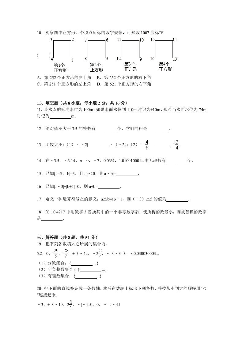 2015-2016学年江苏省泰州市白马中学七年级(上)月考数学试卷(10月份)一、选择题(共10小题,每小题3分,共30分)1.-2015的倒数是()11A.2015B.2015C.-2015D.20152.|-4纠等于()A.4B.-4C.2D.43.平方等于16的数是()A.4B.-4C.±4D.(4)24.如果某台家用电冰箱冷藏室的温度是4℃,冷冻室的温度比冷藏室的温度低22℃,那么这台电冰箱冷冻室的温度为()A.-26℃B.-22℃C.-18℃D.-16℃5.据统计,2013年河南省旅游业总收入达到约3875.5亿元.若将3875.5亿用科学记数法表示为3.8755×10,则n等于()A.10B.11C.12D.136.如果a+b=0,那么a,b两个实数一定是()A.都等于0B.一正一负C.互为相反数D.互为倒数7.如图是一个简单的数值运算程序,当输入的x的值为2时,则输出的值为(输入x×(-3)一2输出A.-4B.4C.5D.-88.下列运算正确的是(77(A.-5252)=-1B.-7-2×5=-9×5=-477器1sD务C.3(-3632'89.下列说法正确的有()(1)整数就是正整数和负整数:(2)零是整数,但不是自然数:(3)分数包括正分数、负分数:(4)正数和负数统称为有理数:(5)一个有理数,它不是整数就是分数.A.1个B.2个C.3个D.4个