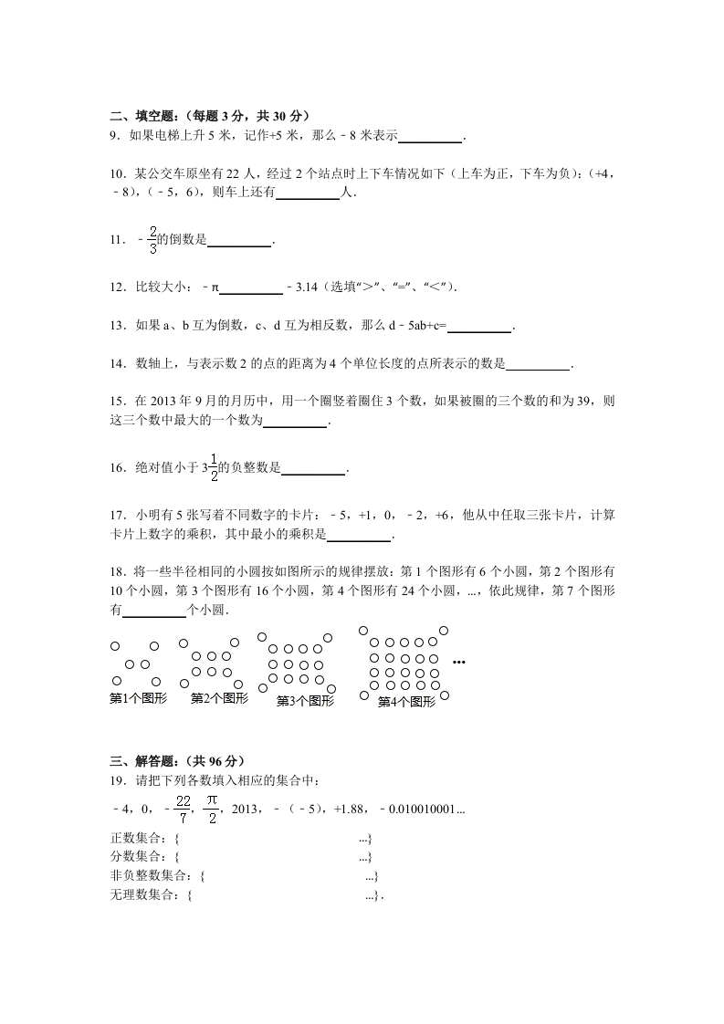 2015-2016学年江苏省泰州市姜堰四中七年级(上)第一次月考数学试卷(10月份)一、选择题:(每题3分,共24分)1.-3的相反数是().-3B.-5C.3D.2.某粮店出售的三种品牌的面粉袋上,分别标有质量为(25±0.1)kg、(250.2)kg、(250.3)kg的字样,从中任意拿出两袋,它们的质量最多相差()A.0.8kgB.0.6kgC.0.5kg D.0.4kg3.下列说法不正确的是()A.0既不是正数,也不是负数B.0的绝对值是0C.一个有理数不是整数就是分数D.1是绝对值最小的正数4.下列各对数中互为相反数的是()A.-(+3)和+(-3)B.-(-3)和+(-3)C.-(-3)和H-3引D.+(-3)和-|-3引5.下列说法中:①有理数的绝对值一定是正数:②互为相反数的两个数,必然一个是正数,一个是负数:③若abl,则a与b互为相反数:④绝对值等于本身的数是0:⑤任何一个数都有它的相反数.其中正确的个数有()A.0个B.1个C.2个D.3个6.如图所示,下列判断正确的是()方0a>A.a+b>0 B.a+b<0 C.ab>0 D.b