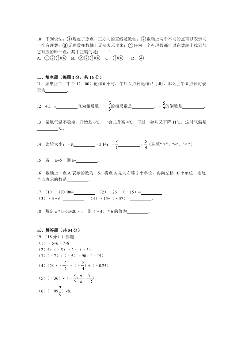2015-2016学年江苏省无锡市宜兴市丁蜀学区六校联考七年级(上)第一次月考数学试卷一、选择题(每小题3分,共30分)1.下列说法正确的是()A.整数就是正整数和负整数B.分数包括正分数和负分数C.在有理数中,不是负数就是正数D.零是整数,但不是自然数2.下列各数中,在-2和0之间的数是()A.-1B.1C.-3D.33.在下列数-兰,+1,6.7,-14,0,22-5,25%中,属于整数的有(A.2个B.3个C.4个D.5个4.某天上午6:00柳江河水位为80.4米,到上午11:30水位上涨了5.3米,到下午6:00水位又跌了0.9米,下午6:00水位应为()A.76米B.84.8米C.85.8米D.86.6米5.任何一个有理数的绝对值一定()A.大于0B.小于0C.不大于0D.不小于06.一个数的相反数比它的本身大,则这个数是()A.正数B.负数C.0D.负数和07.下列运算正确的是(.1,1.150D.-244A,92x2-9B.的(3=1C,6111-88.下列结论正确的是()A.两数之和为正,这两数同为正B.两数之差为负,这两数为异号C.几个数相乘,积的符号由负因数的个数决定D.正数的任何次幂都是正数,负数的偶次幂是正数9.如图,根据有理数a,b,c在数轴上的位置,下列关系正确的是()da o b→A.c>a>0>bB.a>b>0>cC.b>0>a>c D.b>0>c>a