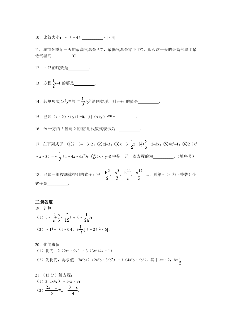 江苏省盐城市东台市创新学校2015-2016学年初一上学期第二次月考数学试卷【解析版】348072@abc2个月前发布关注私信0.23MB12页0407江苏省盐城市东台市创新学校2015-2016学年初一上学期第二次月考数学试卷【解析版】此内容为付费资源,请付费后查看¥11¥31黄金会员免费钻石会员免费立即购买您当前未登录!建议登陆后购买,可保存购买订单付费资源 第1页 / 共12页 第2页 / 共12页 试读已结束,还剩10页,您可下载完整版后进行离线阅读 © 版权声明文章版权归作者所有,未经允许请勿转载。THE END初中教育学习资源小学教育教育学类高中教育高考真题 文本预览 2015-2016学年江苏省盐城市东台市创新学校七年级(上)第二次月考数学试卷一、选择题(每题3分,共24分)1.计算-2+1的值是()A.-3B.-1C.1D.32.下面的有理数中,最小的是()A1B.2C.D.-3.已知:①-8,@于自-4号@25,⑧020202-(相邻两个2之间依次带加一个0),其中无理数有()A.3个B.2个C.1个D.0个4.a,b是有理数,它们在数轴上的对应点的位置如图所示,把a,-a,b,-b按照从小到大的顺序排列(A.-b<-a 查看更多 收起部分 喜欢就支持一下吧点赞7 分享QQ空间微博QQ好友海报分享复制链接收藏 上一篇 江苏省盐城市滨海一中2015-2016学年初一上学期月考数学试卷【解析版】(9月份) 下一篇 江苏省盐城市东台市第六教研片2015-2016学年初一上学期月考数学试卷【解析版】(10月份) 相关推荐 1.2全等三角形以及探索全等三角形的条件(原卷版)1.2全等三角形以及探索全等三角形的条件(原卷版)2个月前 59101个面试难题及结构化面试题库(拿来即用)101个面试难题及结构化面试题库(拿来即用)1个月前 58全国大学生电子设计比赛试题_智能送药小车全国大学生电子设计比赛试题_智能送药小车1个月前 57《勾股定理》随堂测试试题《勾股定理》随堂测试试题2个月前 56医学基础知识:药物作用的两重性 医学基础知识:药物作用的两重性 1个月前 55《二次函数与一元二次方程》综合练习1《二次函数与一元二次方程》综合练习12个月前 55 评论 抢沙发 请登录后发表评论 登录 注册 暂无评论内容