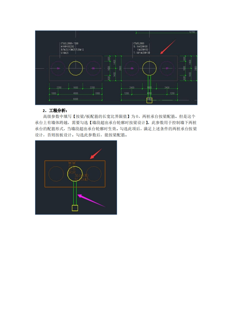 都是参数设置惹的“祸”参数设置错误导致的基础计算出错、异常(下)王晓可上期我们通过五个工程案例,介绍了参数设置错误导致的基础计算异常,本期我们将继续通过四个工程案例,介绍参数设置相关问题。六、有墙体跨越的两桩承台按板计算1.问题:两桩承台选择按梁计算,为何仍按板输出配筋面积,施工图中也是按筏板配筋?高级参故承台/独设计筏板防水板设计承台/独基设计地梁/拉梁/陶体条基设计承/独基设计两桩承台设计冲切剪切/月部受压验算跨高比小于的承台梁:沉降计算有限元分析求解其他参数O接颈嘉甥'方式妇筋○接颈蒂棉就芳式配防○按普通梁设计按梁/杨的长宽比界限值☐墙段超出承台轮阳时按粱设计按菜/板筋的长宽比界限值三桩承台设计此参数用于控制筏板内两桩承等边、等腰控制尺寸(n】台配筋形式。长宽比(该值时按10板配筋;长宽比该值时按粱龋配☐矩形三桩承台按三向驾筋筋;填0表示不执行长宽比判断,全部军筋。其饱口转襄营轮内的修柱G墙)承台、独蛙口一字型承台(桩敖>3)按梁设计(跨高比小于5时,形式同两桩承台)确定门取消