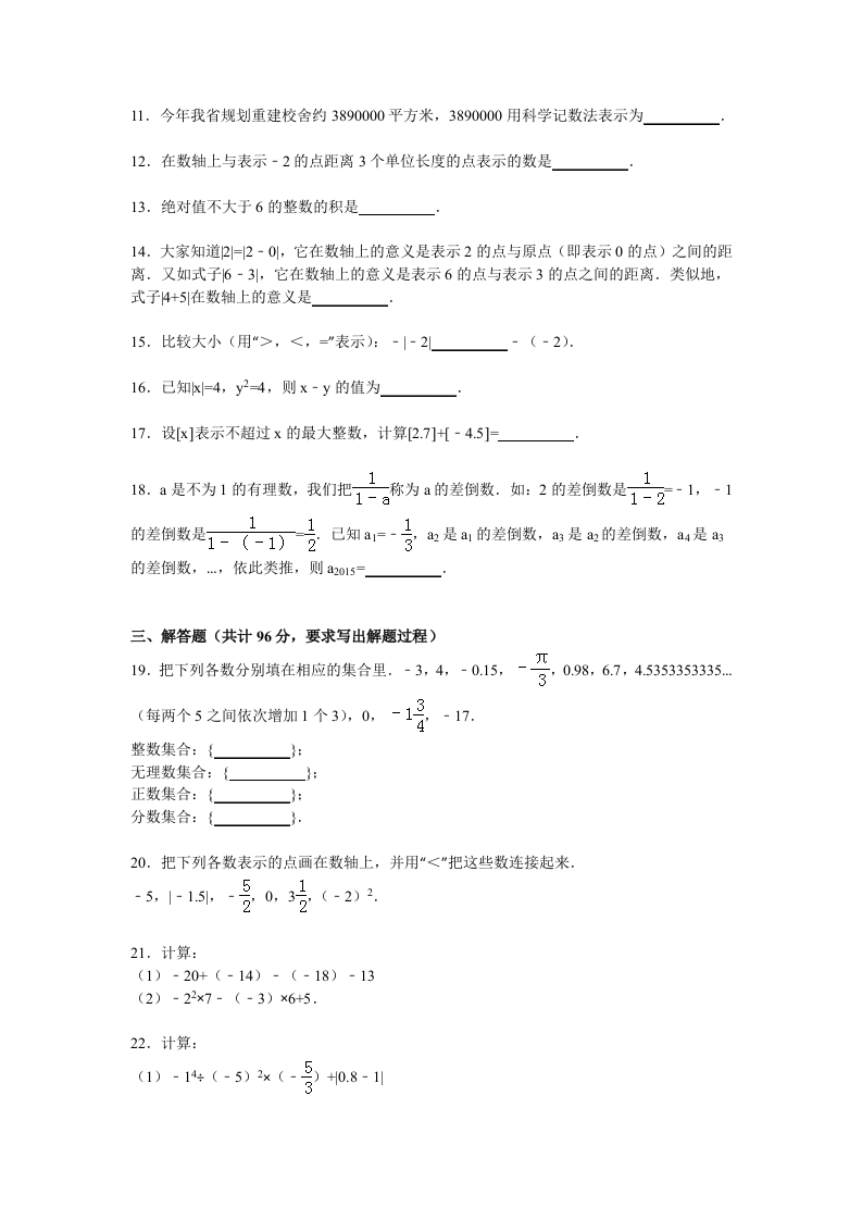 2015-2016学年江苏省扬州市邗江实验学校七年级(上)第一次月考数学试卷一、选择题(每题3分,共计24分)1.数轴上原点以及原点右边的点所表示的数是(A.负数B.非负数C.正数D.非正数2.下列正确的式子是()A>0B(~4)-小4C景号D.-3.14>-元3.下列各数:(-3.0,5,-3受3.1,-2,2014.2m,其中是负数的有(A.2个B.3个C.4个D.5个4.某粮店出售的三种品牌的面粉袋上,分别标有质量为(25±0.1)kg、(25±0.2)kg、(25±0.3)kg的字样,从中任意拿出两袋,它们的质量最多相差()A.0.8kgB.0.6kgC.0.5kg D.0.4kg5.下列各组数中,两个数相等的是()A.32与23B.-23与(-2)3C.-32与(-3)2D.[-2×(-3)]2与2×(-3)26.如果a+b>0,ab<0,那么下列各式中一定正确的是()A.a-b>0B.80C.b-a>0D.807.若一个有理数的平方是正数,则这个有理数的立方是()A.正数B.负数C.正数或负数D.整数8.数轴上表示整数的点称为整点,某数轴的单位长度为1cm,若在数轴上画出一条长2015cm的线段AB,则AB盖住的整点个数是()A.2015或2016B.2014或2015C.2016D.2015二、填空题(每题3分,共计30分)9.若电视天线高出楼顶3米,记作+3米,则比楼顶低2米,记作米。10.3的倒数是