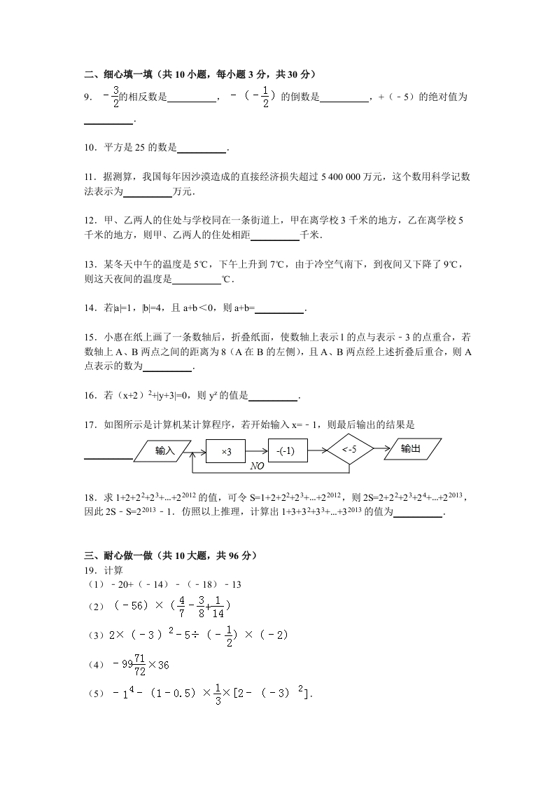 2015-2016学年江苏省扬州市江都市七校联考七年级(上)月考数学试卷(10月份)一、精心选一一选(共8小题,每题3分,满分24分)1.如果收入200元记作+200元,那么支出150元记作(A.+150元B.-150元C.+50元D.-50元。下列一组数:8,2,2空,,06666,0,2,0.0808008,其中是无理数的()A.0个B.1个C.2个D.3个3.有四盒小包装杨梅,每盒以标准克数(450克)为基准,超过的克数记作正数,不足的克数记作负数,以下数据是记录结果,其中表示实际克数最接近标准克数的是()A.+2B.-3C.+3D.-14.下列各组数中,互为相反数的是()A.2与号B.(-1)2与1C.-1与(-1)3D.-(-2)与-|-25.下列运算正确的是(A-+=-(+3)7T7=-1B.-7-2x5=-9×5=-45c.÷×号31-3D.-(-3)2=-96.下列说法正确的是()①有理数包括正有理数和负有理数②相反数大于本身的数是负数③数轴上原点两侧的数互为相反数④两个数比较,绝对值大的反而小A.②B.①③C.①②D.②③④7.表示a,b两数的点在数轴上位置如图所示,则下列判断错误的是()bA.a+b<0 B.a-b>0 C.axb>0 D.a