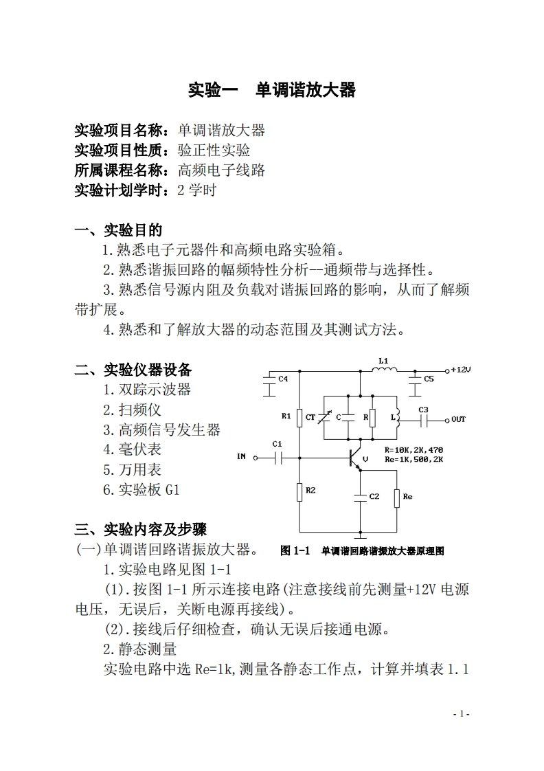 高频电子线路实验指导书348072@abc3个月前发布关注私信0.57MB15页020高频电子线路实验指导书此内容为付费资源,请付费后查看¥13¥19黄金会员免费钻石会员免费立即购买您当前未登录!建议登陆后购买,可保存购买订单付费资源 第1页 / 共15页 第2页 / 共15页 试读已结束,还剩13页,您可下载完整版后进行离线阅读 THE ENDPPT模板办公模板实用范文物联网设计网站设计网络规划设计 文本预览 《高频电子线路》实验指导书桂玉屏广东工业大学信息工程学院二0一五年十一月印刷 查看更多 收起部分 喜欢就支持一下吧收藏