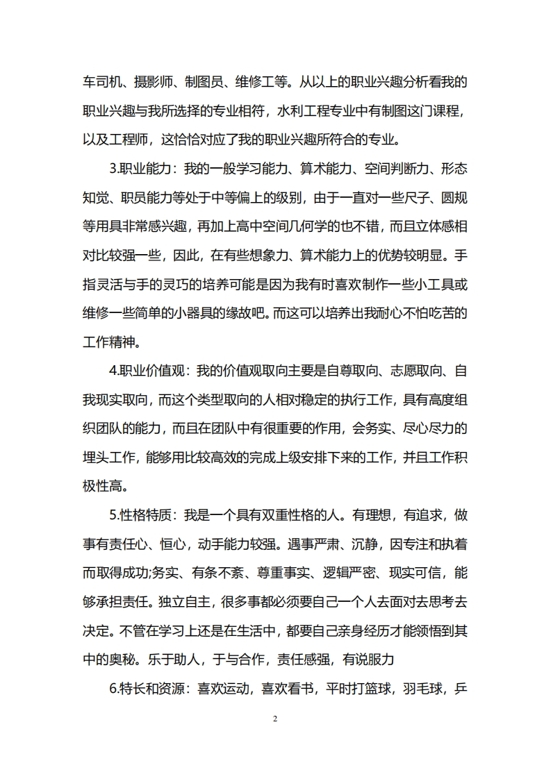 个人职业远景发展优秀规划范文职业生涯规划书可以将个人的职业远景和长远规划相结合,写好职业发展远景规划可以帮助你找到适合自己的职场道路,下面是整理的个人职业远景规划范文,以供大家阅读。当今社会竞争越发激烈,如果我们不加紧自己的脚步,跟随时代的步伐,通过不断学习,来充实自己,将很难有一个长足的进步。而一份对自己未来的规划是与人竞争的主要手段之一。个人发展规划代表了我现阶段人生的最大理想,也是近期最应该付诸时间实践的,它的实施与否主宰着我的后半生的成功与失败。一、认识自我1.个人基本情况:别人说我性格偏于外向,但是我认为我的性格具有两面性,我喜欢安静的环境,喜欢一个人学习、看书、听歌。但是有时却喜欢热闹,和朋友一起聊天,谈天论地,给彼此带来快乐。我精力旺盛,干劲十足,工作效率高持之以恒不怕吃苦永不退缩:有而耐性,有冒险精神,喜欢从事有挑战的工作有协调性,能处理好学习与工作的关系。2职业兴趣:我是属于现实型的,而现实型的标本特征是具有实际、物质、安定”等人格特征,喜欢有规呗则的、明确的、具体的岗位职务和需要机器进行操作性强的工作。适合的职业:工程到师、电器技师、一般劳工、农夫、机械员、货