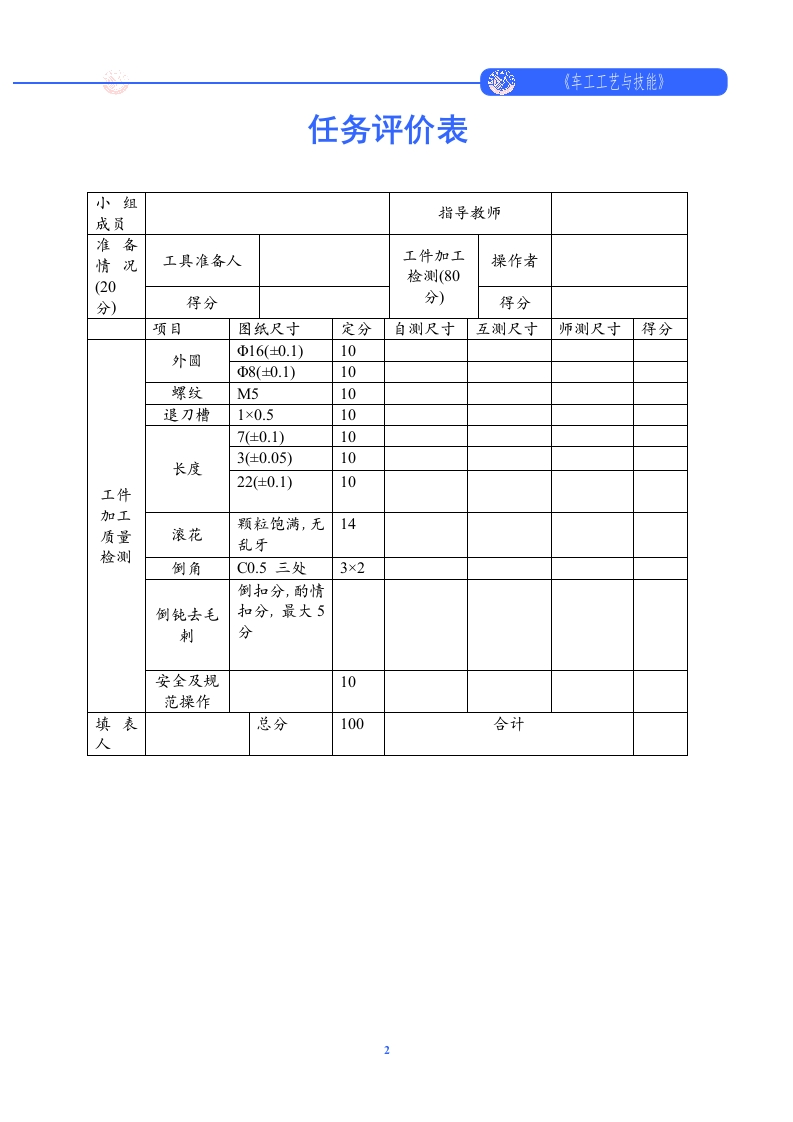 工件的表面修饰-任务单348072@abc4个月前发布关注私信0.39MB2页029工件的表面修饰-任务单此内容为付费资源,请付费后查看¥13¥19黄金会员免费钻石会员免费立即购买您当前未登录!建议登陆后购买,可保存购买订单付费资源 第1页 / 共2页 第2页 / 共2页 已完成全部阅读,共2页 THE ENDPPT模板办公模板实用范文物联网设计网站设计网络规划设计 文本预览 任务工艺卡任务工艺卡班级:姓名:年月日任务名称5.1工件的表面修饰在如图5-1所示工件手柄Φ16的外圆上滚出网纹。-.3任务内容工件的表面修饰加工一般有滚花加工和抛光加工两种。滚花是在车务分析床上用滚花刀滚压而成,一般用于工具和机器上的手柄捏手部分,利用滚花以增强摩擦力或增加零件表面美观。本任务只要求实现外圆滚花。正确安装滚花刀,利用其挤压工件便可实现滚花。操作步骤任务小结 查看更多 收起部分 喜欢就支持一下吧收藏