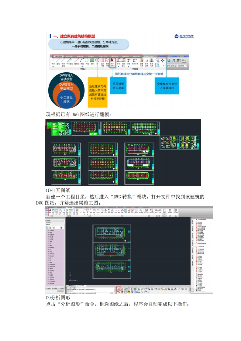 混凝土结构安全鉴定及抗震鉴定实例李伟民2024年11月15日消息,住建部、财政部联合印发通知,提出:城中村改造政策支持范围从最初的35个大城市,扩大到近300个地级城市。新增实施100万套城中村改造和危旧房改造这项增量政策,将加速落地。可见,我国城市发展已经进入了城市更新的重要时期,由大规模增量建设转为存量提质改造和增量结构调整并重。其中,既有建筑改造加固之前,需要先进行检测鉴定。下面采用YJK软件对某一既有房屋进行安全鉴定及抗震鉴定,并生成鉴定报告。一.工程概况本工程为河北地区某一混凝土框架结构房屋,该建筑建造于1996年,其抗震设防类别为丙类,抗震等级为三级,抗震设防烈度为7度,Ⅱ类场地,地震分组为第三组。该业主考虑到其房屋使用年限已久,担心存在安全隐患,采用YJK软件进行安全鉴定与抗震鉴定。现收集到此项目当年的DWG图纸,结合检测单位提供的检测数据,使用YJK软件设计生成鉴定报告。二.建立模型在建模菜单下进行结构模型建立,分两种方法:手动建模与图纸翻模。