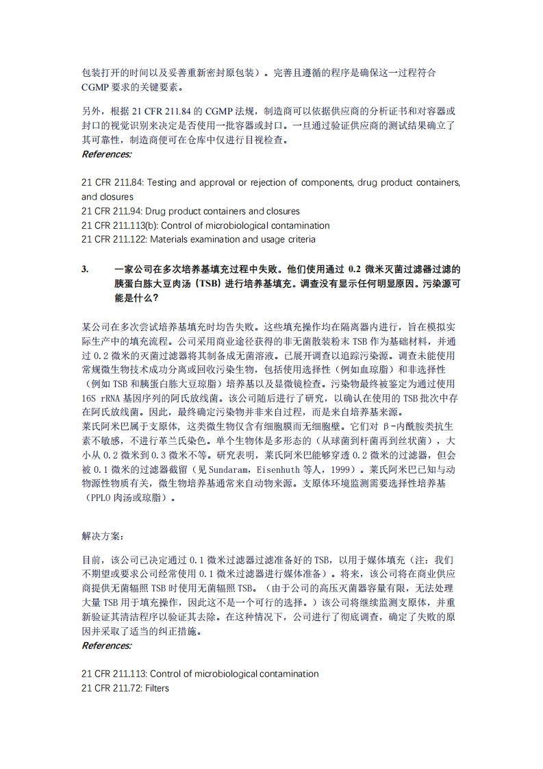 cGMP问答|成分和药品容器及密封件的控制CGMP法规是否允许在完成纠正措施后销毁内部质量保证审计报告?根据成品药品生产的CGMP法规(21CFR第210和211部分),法规并未明确规定必须执行内部质量保证审计或保留相关记录。若内部审计报告主要用于核实公司质量系统的正常运作,并且所有纠正措施均己得到验证,则公司有权选择是否保留该报告。然而,需要注意的是,任何因内部审计而产生的纠正措施文件都必须妥善保存(参见$§211.180和211.188)。例如,若内部审计发现混合步骤存在问题并导致混合时间的调整,那么所有受影响的程序,包括主生产记录,都必须体现这些更改,并且这些记录将接受FDA的常规检查。同时,针对该问题对相关批次产生的影响进行的任何调查记录也必须保留,以备FDA检查(参见211.192)。此外,还需区分因响应产品投诉($211.198)、供应商资质审核($211.84)、记录和数据的定期审查($211.180(e))以及故障调查(S211.192)等而准备的调查或评估报告与上述内部审计报告的不同。这些记录不仅需要接受FDA的检查,还必须至少保留CGMP法规规定的时间(参见s211.180)。References:21 CFR 211.84:Testing and approval/rejection of components,drug product containers,andclosures21 CFR 211.180:General requirements21 CFR 211.188:Batch production and control records21 CFR 211.192:Production record review21 CFR 211.198:Complaint filesPreamble to the Current Good Manufacturing Practice in Manufacture,Processing.Packing.or Holding regulations(43 FR 45015,paragraph 4,Sept 29,1978)Compliance Policy Guide Sec.130.300 FDA Access to Results of Quality Assurance ProgramAudits and Inspections (CPG 7151.02)2.是否可以对仓库中的容器、封口和包装材料进行抽样以进行收货检查?可以的。通常情况下,这种抽样行为在药品生产设施的仓库中进行并不会对容器或封口构成风险,也不会影响样品结果的准确性。然而,是否违反CGMP关于容器“应以防止其内容物受到污染的方式打开、取样和密封”的要求(参见21CFR211.94和211.113(b)),取决于被抽样材料的声称质量特性和仓库环境。对于声称无菌或已除热的容器或封口,抽样应在与被声称材料质量相当的环境条件下进行:若仓库环境无法满足这些要求,则需采取其他措施以保持剩余容器或封口的适用性,并确保样品完整性(特别是进行微生物污染检查时)。在抽样过程中和之后,应尽可能限制与环境的接触(例如擦拭外表面、减少原